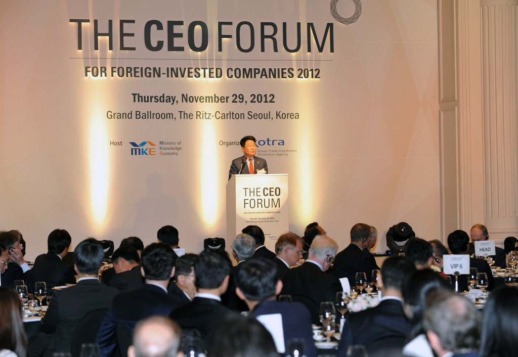 Vice Minister Attends CEO Forum Vice Minister for Trade and Energy Cho Seok speaks at the CEO Forum for Foreign-invested Companies 2012 on November 29 in Seoul. Around 150 representatives from foreign companies in Korea participated in the event. date2012-12-07