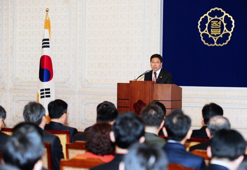 Incoming Minster of Trade, Industry and Energy Yoon Sang-jick speaks at an inaugural ceremony on March 11 in the Gwacheon Government Complex. date2013-03-12