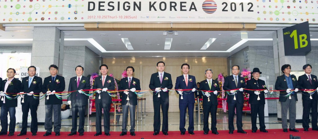 Minister of Knowledge Economy Sukwoo HONG (center) cuts the ribbon at the opening ceremony of Design Korea 2012 on October 25 in Daegu, in the southern part of Korea. The event drew around 800 participants from industry, academia and research institutes. date2012-11-06
