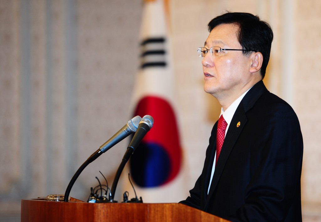 New Minister Takes Office Minister of Knowledge Economy Sukwoo HONG speaks at his swearing-in ceremony on November 17 in the Gwacheon Government Complex. date2011-11-22