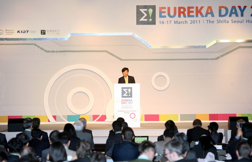 Korea, Europe Mark Second EUREKA Day Nearly 600 businesspeople and R&D specialists convened in Seoul for the second EUREKA Day—a collaborative event between Korea and its European partners to promote technology development and open innovation. EUREKA is a pan-European network that promotes market-oriented industrial research and development, and in 2009 Korea became the first Asian country to gain Associate Country status. Last year, Korea proclaimed every third Wednesday in March as date2011-03-23
