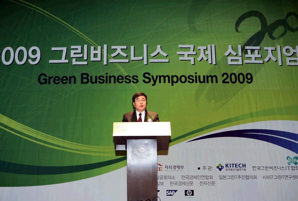 Green Business Symposium Vice Minister for Industry and Technology Rim Chemin speaks in Seoul on January 14 at an international symposium on green business. date2009-01-16