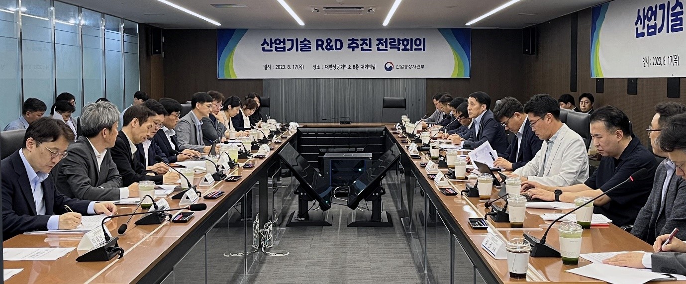 The Republic of Korea’s Ministry of Trade, Industry and Energy (MOTIE) Vice Minister Youngjin Jang chaired the Industrial Technology R&D Strategy Meeting on August 17 at the Korea Chamber of Commerce and Industry (KCCI) and led discussions on the direction of investment and improvement of industrial technology R&D for 2024, as well as measures to expand the scope of international joint R&D projects. The meeting was attended by representatives from relevant institutes, includin date2023-08-21