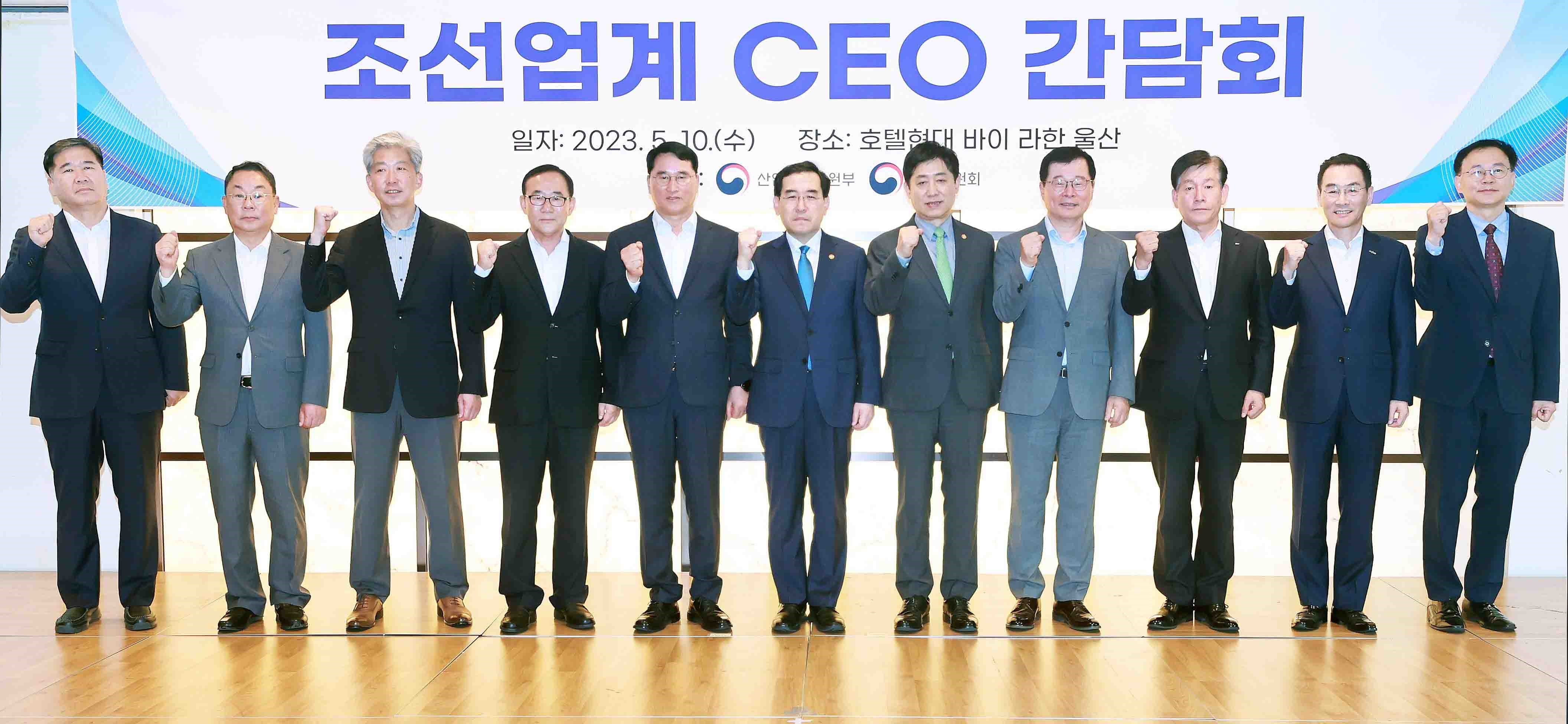 Trade, Industry and Energy Minister Lee Chang-yang chaired the Shipbuilding Industry CEOs’ Conference on May 10 in Ulsan and discussed Government measures for securing future super gap technology and gathered industry opinions on challenges and possible solutions. The conference was attended by representatives of shipbuilding industry businesses, associations and other relevant organizations, including Hyundai Heavy Industries (HHI), Samsung Heavy Industries (SHI) and Korea Offsho date2023-05-11