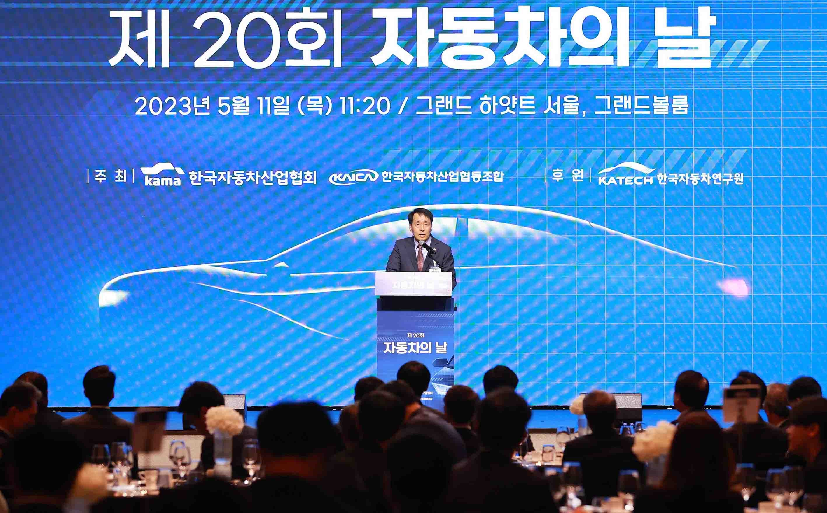 Trade, Industry and Energy 1st Vice Minister Jang Young-jin attended the “20th Automobile Day” ceremony at the Grand Hyatt Seoul on May 11 and awarded 34 orders and medals of merit, including the Silver Tower Order of Industrial Service Merit presented to Kia Motors Executive Vice President Choi Jun-young. Vice Minister Jang commended the Korean automobile industry’s accomplishment of reaching USD 77.4 billion in export last year amid difficult conditions, and again hi date2023-05-12