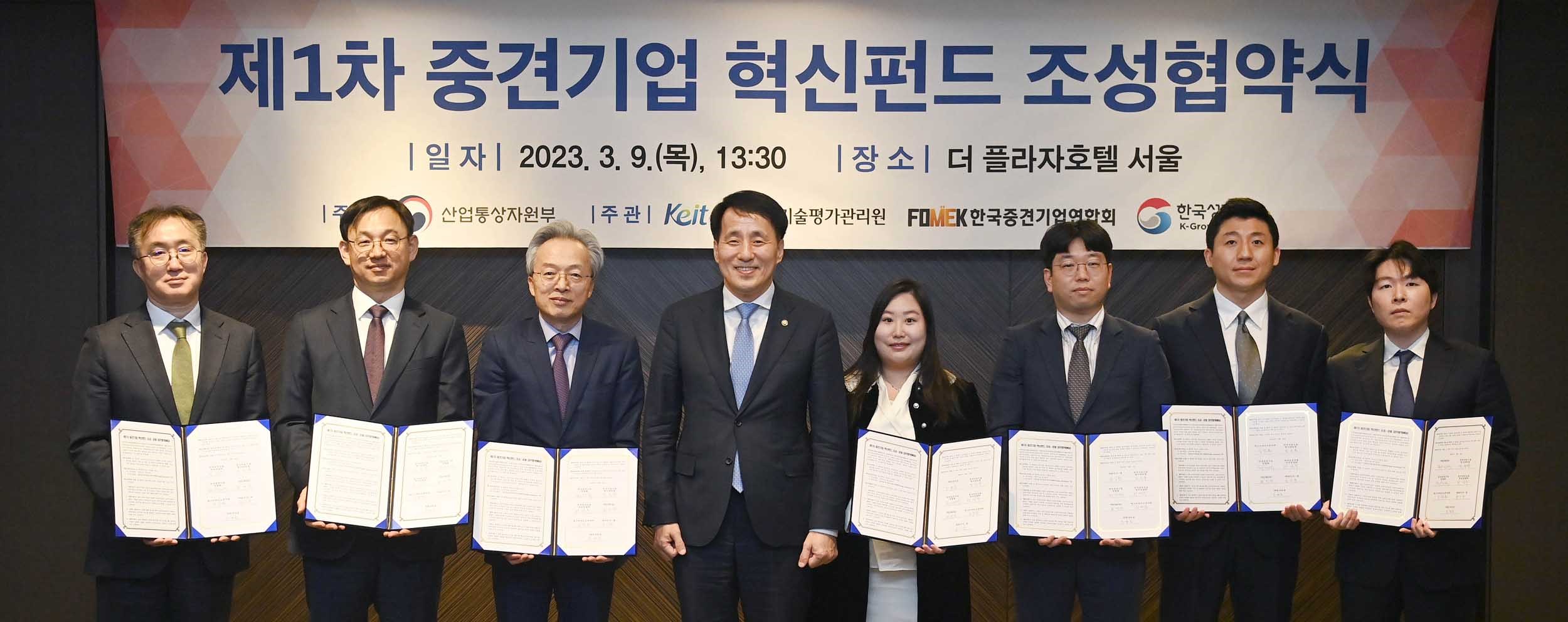 Trade, Industry and Energy 1st Vice Minister Jang Young-jin attended the first MOU signing ceremony launching Korea’s innovation fund for middle-market companies on March 9 at the Plaza Hotel Seoul to support middle-market companies’ entrance into new businesses. The Vice Minister gave an opening message and attended the MOU signing ceremony for supporting middle market companies’ development and securing new growth engines. The ceremony was attended by repres date2023-03-10