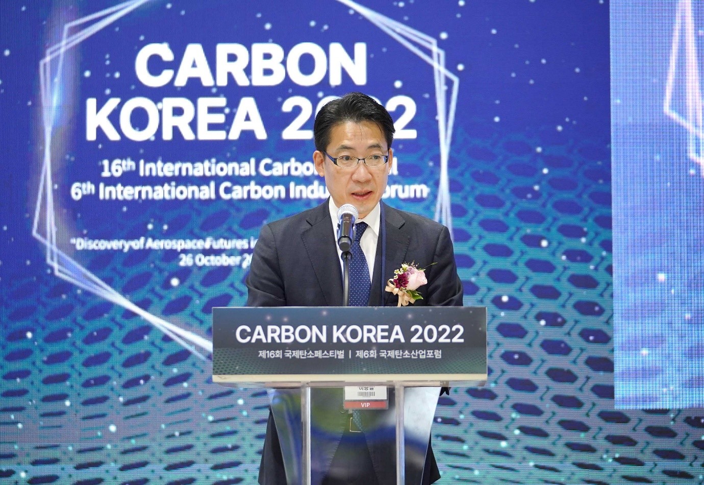 The Ministry of Trade, Industry and Energy's Materials Convergence Industries Director-General Lee Yong-pil attended on October 26 the opening ceremony of Carbon Korea 2022 at COEX in Seoul, which was held for the sharing of present and future of carbon products for carbon industry advancement. At the ceremony, Director-General Lee toured the exhibition booths and awarded the Presidential, Prime Minister's and Government commendations to seven persons who contributed to carbon industry date2022-10-27