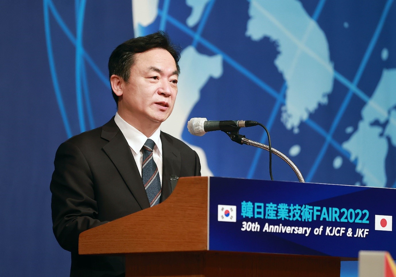 Trade, Industry and Energy Ministry’s Deputy Trade Minister Jeong Dae-jin attended the 15th Korea-Japan Industrial Technology Fair on November 1 at the Lotte Hotel Seoul to congratulate the two countries’ business and tech exchanges and support companies' networking. The fair was attended by approximately 200 persons, including Kim Yoon, the chairman of Korea-Japan Cooperation Foundation for Industry and Technology, and Koichi Aiboshi, Ambassador of Japan to the Republic of date2022-11-01