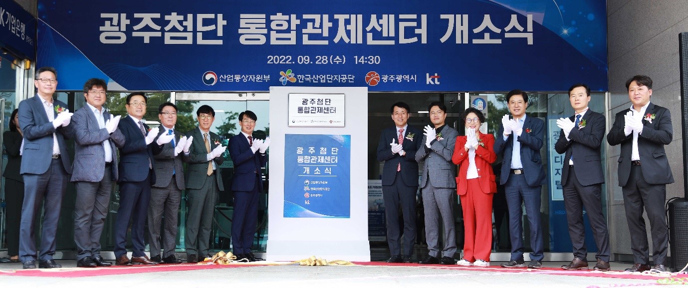 Trade, Industry and Energy 1st Vice Minister Jang Young-jin attended the Gwangju High-Tech Industrial Complex Digital Control Center Opening Ceremony on September 28 and congratulated the launching of the prevention system for water disasters and fires amid recent heavy rains and typhoons that caused damage across industrial complexes. The event was attended by approximately 20 persons, including Gwangju Deputy Mayor Kim Gwang-jin, Korea Industrial Complex Corporation Chairman Kim Jeong date2022-10-04