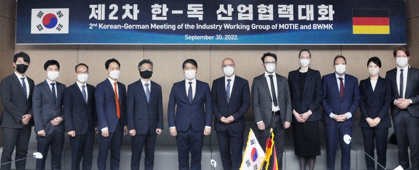 The Ministry of Trade, Industry and Energy's Deputy Minister for the Office of Industrial Policy Joo Young-joon attended the “2nd ROK-Germany Meeting of the Industry Working Group of MOTIE and BWMK” held on September 30 at the Korea Chamber of Commerce and Industry (KCCI) to discuss U.S.’ IRA, supply chain crisis and decarbonization strategies with German counterparts, including Germany's Ministry of Economic Affairs and Climate Action Industrial Policy Director General Bernhar date2022-09-30