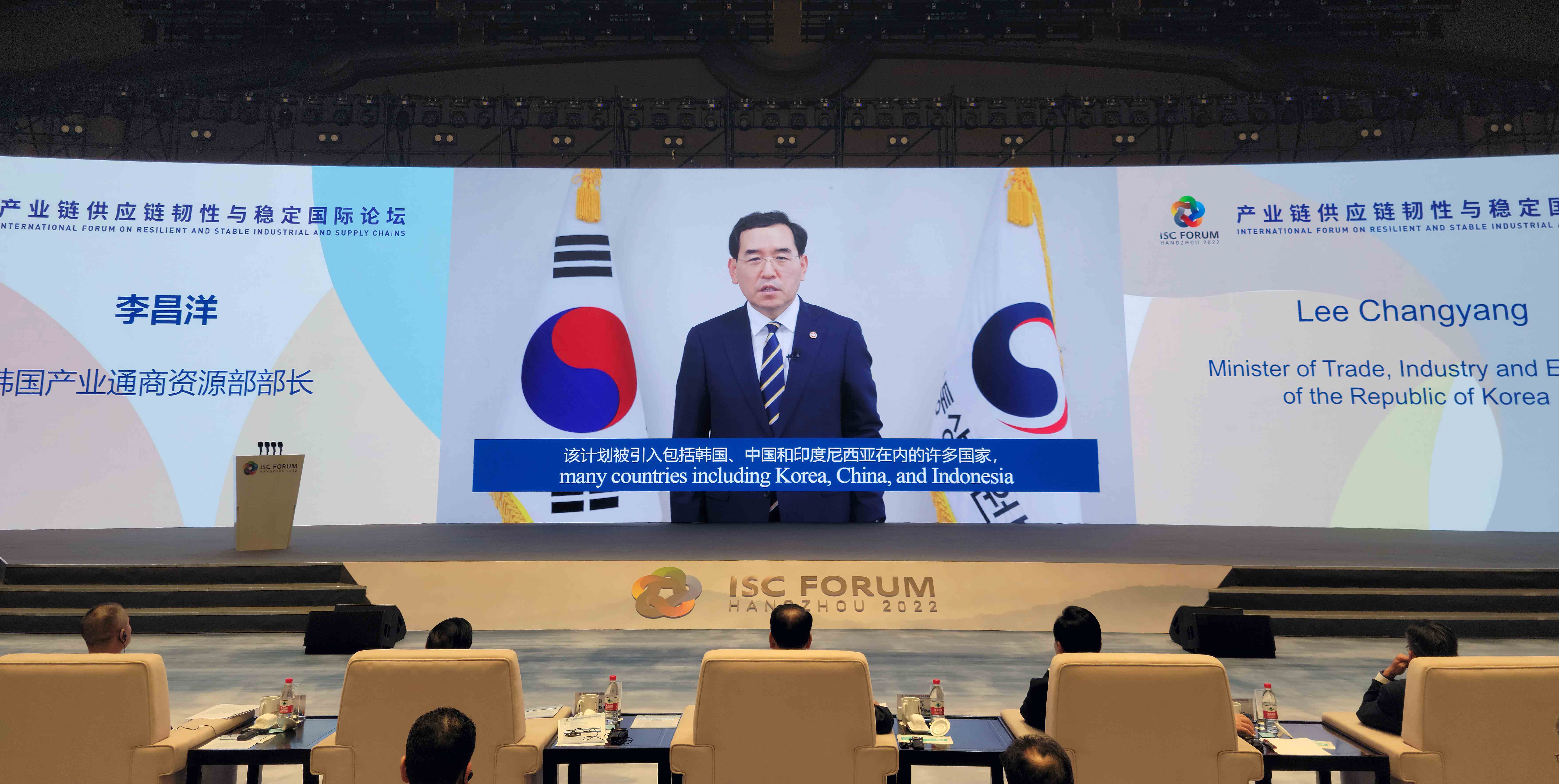 Trade, Industry and Energy Minister Lee Chang-yang attended the International Forum on Resilient and Stable Industrial Supply Chains held in China by videoconferencing on September 19 and gave a congratulatory message for its opening ceremony. The forum was first proposed by China during the G20 meetings in October 2021, and hosted by the Ministry of Industry and Information Technology (MIIT) on September 18-19, with the participation of international organizations and various countries date2022-09-20