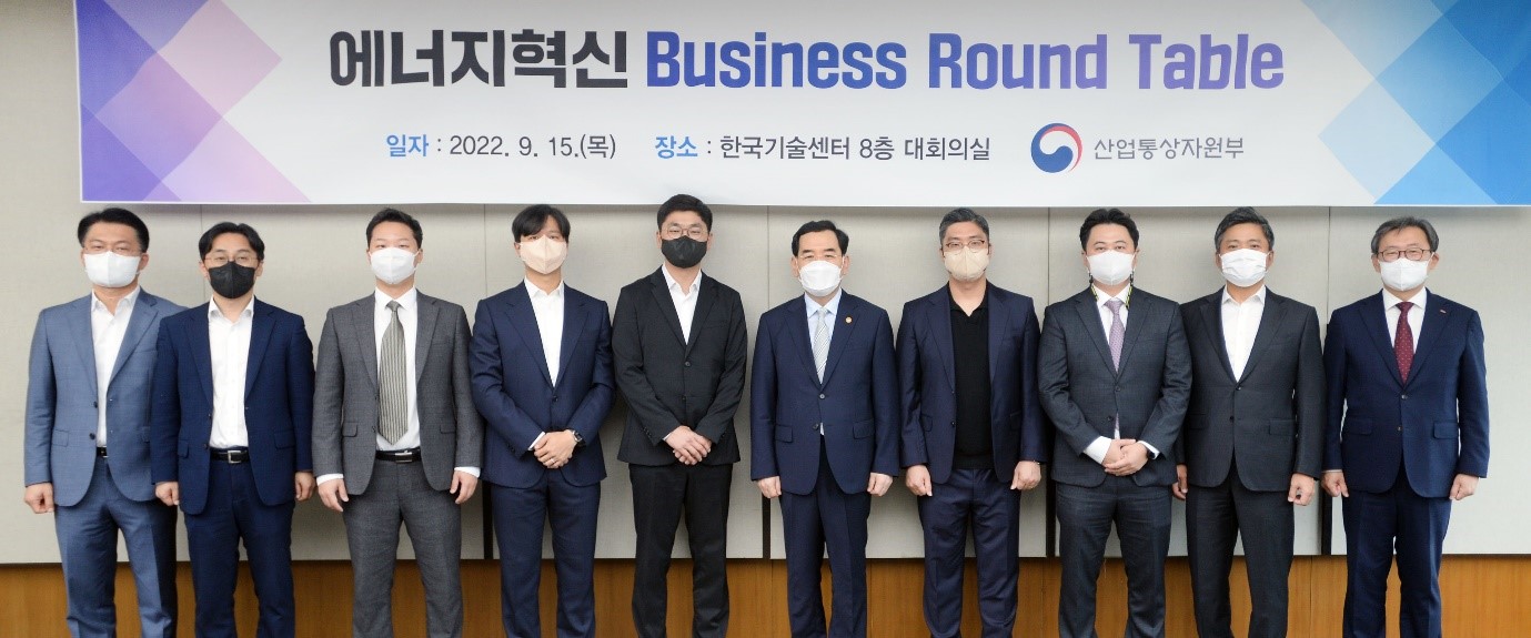 Trade, Industry and Energy Minister Lee Chang-yang presided the Energy Innovation Startup Business Roundtable on September 15 at Korea Technology Center in Seoul to facilitate discussions on government support measures for innovative energy startups, investment, deregulation and startup nurturing. The roundtable was attended by Korea Institute of Energy Technology Evaluation and Planning (KETEP) Kweon Ki-yeoung, Energy X CEO Sean Park, and Terralix CEO Kim Tae-young among other representatives. date2022-09-16