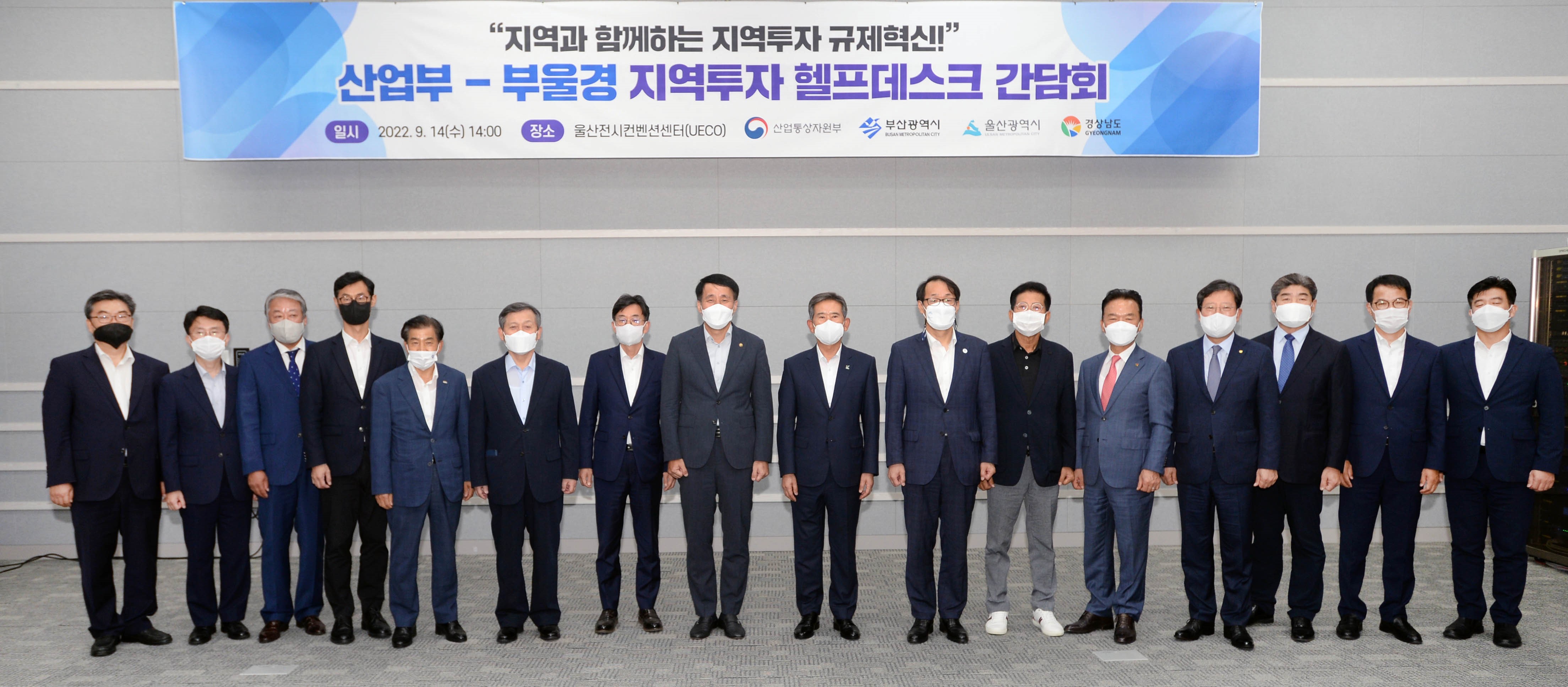 Trade, Industry and Energy 1st Vice Minister Jang Young-jin presided the Busan-Ulsan-Gyeongnam Investment Help Desk Conference on September 14 at the Ulsan Exhibition and Convention Center (UECO) to discuss companies’ challenges in local investment and countermeasures. He gave an opening message, stating that “the Ministry is currently pushing a swift and bold innovation program for deregulation,” adding that allowing private sectors the freedom and creativity th date2022-09-14