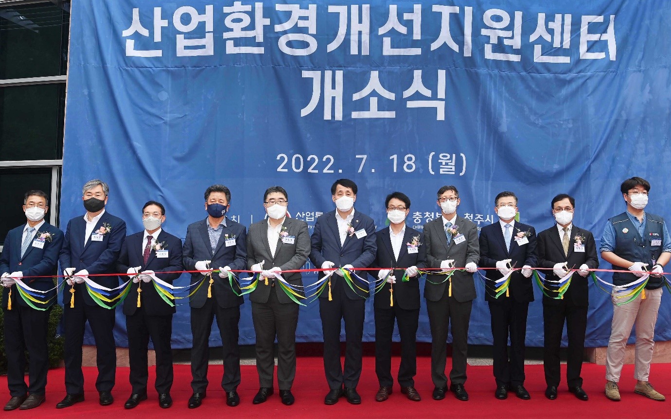 Trade, Industry and Energy 1st Vice Minister Jang Young-jin attended the opening ceremony of the Industrial Environment Improvement Support Center held in the Ochang Scientific Industrial Complex in Cheongju on July 18. The Industrial Environment Improvement Support Center aims to support the fine dust reduction endeavors of Korean SMEs and middle-market companies, and train up personnel with technological prowess in areas concerning industrial environment. The Vice Minister stated in h date2022-07-20