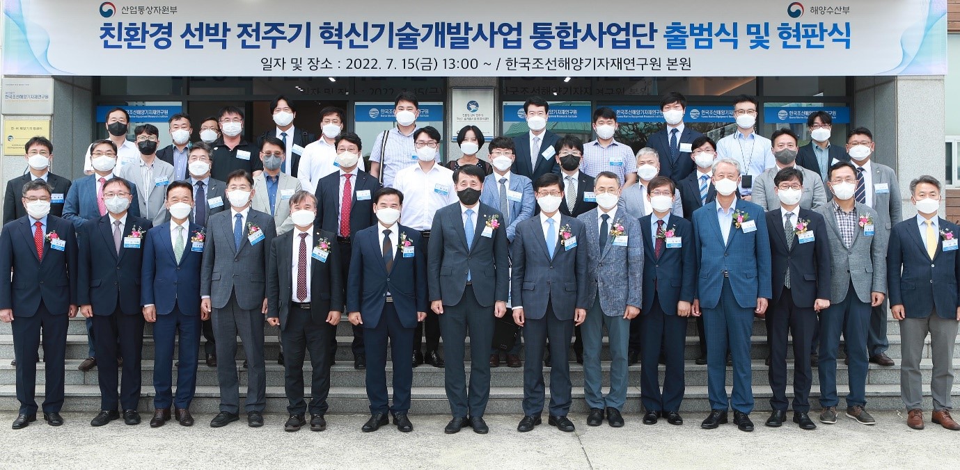 Trade, Industry and Energy 1st Vice Minister Jang Young-jin attended the launching ceremony for Innovative Technology Development Business Project for Eco-Friendly Ships at the Korea Marine Equipment Research Institute (KOMERI) in Busan on July 15, alongside the Oceans and Fisheries (MOF) Vice Minister Song Sang-keun. Vice Minister Jang delivered a congratulatory message and emphasized that Korea should sustain its status as shipbuilding powerhouse with future eco-friendly shipbuilding date2022-07-18