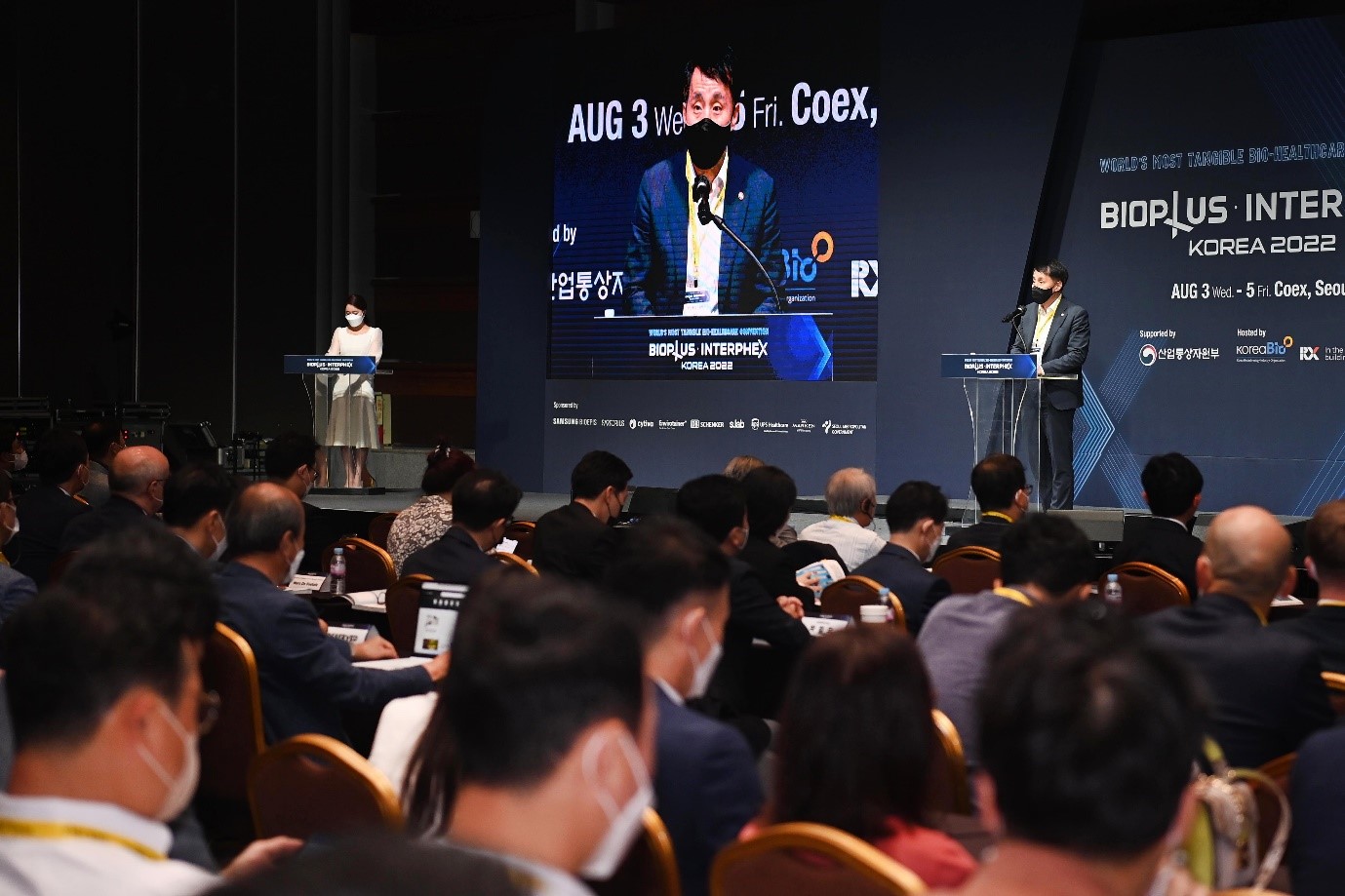 Trade, Industry and Energy 1st Vice Minister Jang Young-jin attended the Bioplus-Interphex (International Pharmaceutical and Manufacturing Expo) Korea 2022 opening ceremony at COEX in Seoul on August 3, co-hosted by the Korea Biotechnology Industry Organization and Reed Exhibitions. Bioplus-Interphex Korea 2022 will be running a total of 350 booths showcasing various products from biomedical, digital, healthcare and such various areas and involve the participation of approximately 1,200 compani date2022-08-03