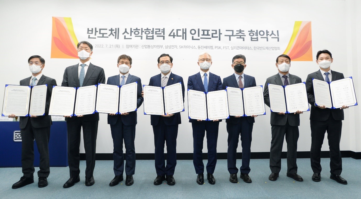Trade, Industry and Energy Minister Lee Chang-yang attended the semiconductor industry conference at Dongjin Semichem plant in Gyeonggi-do on July 21 to announce the semiconductor superpower strategy and hold the industry-academia cooperation infrastructure MOU signing ceremony. In his opening message, Minister Lee relayed that battery, display, future mobility, robot, bio and such promising new industries will be grouped together as “semiconductor-plus industry,” and that m date2022-07-27