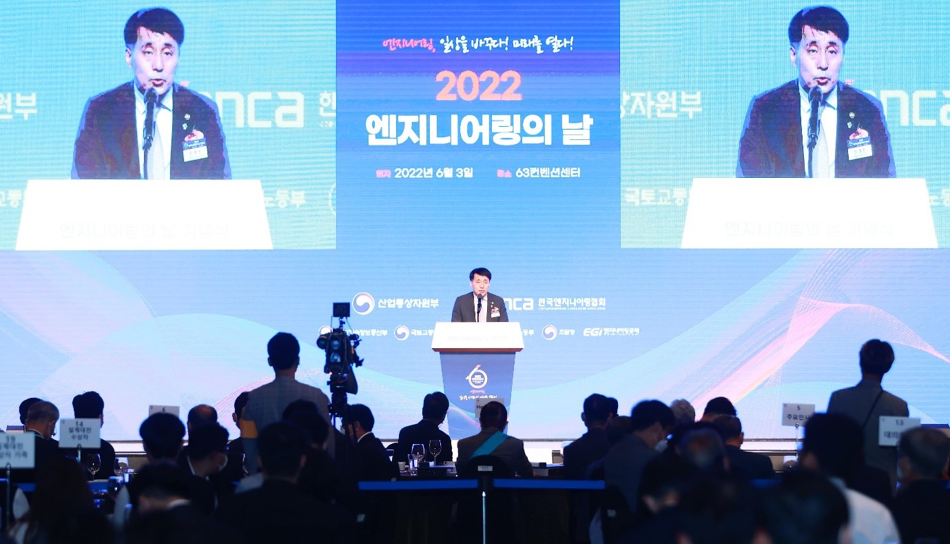 Trade, Industry and Energy 1st Vice Minister Jang Young-jin attended the Engineering Day 2022 ceremony held at the 63 Building in Yeouido, Seoul on June 3 and delivered a congratulatory message and awarded governmental commendations to contributors of engineering industry development. The ceremony was held to credit those that have significantly contributed to the engineering industry, as well as to congratulate everyone for their hard work. Vice Minister Jang awarded the Gold Tower Ord date2022-06-08