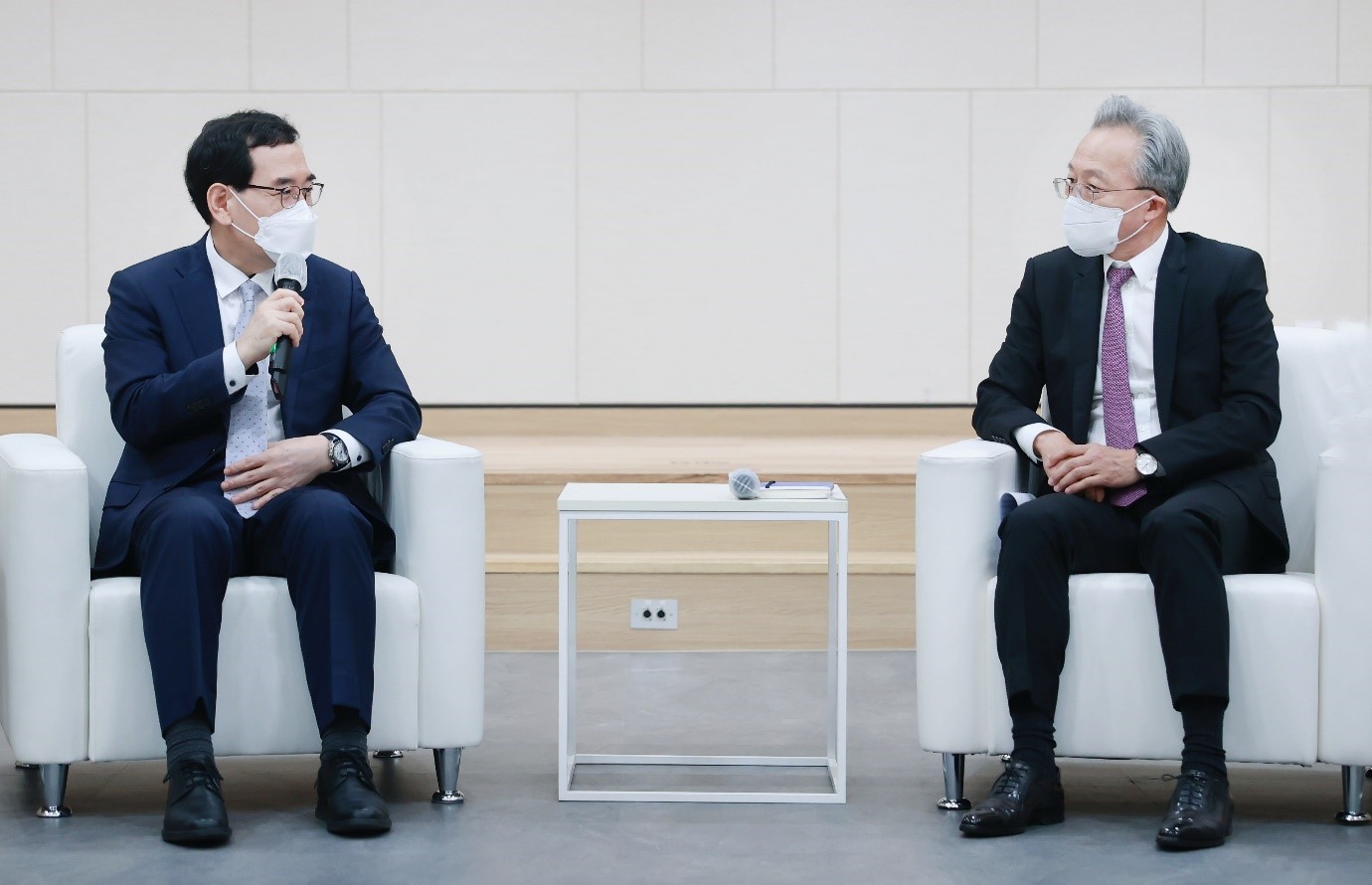 Trade, Industry and Energy Minister Lee Chang-yang visited the SK Hynix headquarters in Gyeonggi-do on May 30 to preside the 1st Industrial Strategy Roundtable specific to the semiconductors industry. Minister Lee received a briefing on the Yongin Semiconductor Cluster progress from Kim Dong-sub, SK Hynix President of Communication & External Affairs, and toured the company’s semiconductor fabrication plant. In the subsequent roundtable meeting, he delivered opening remarks, c date2022-06-03