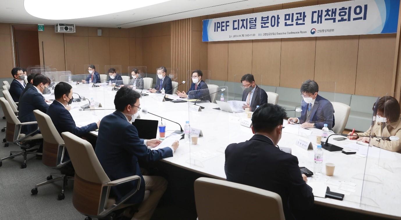 Trade Minister Yeo Han-koo held a meeting on April 14 at the Korea Chamber of Commerce and Industry (KCCI) office in Seoul to discuss public-private digital trade response measures with regard to the Indo-Pacific Economic Framework (IPEF). After his opening remarks, Minister Yeo led the group in discussions on public-private joint efforts in responding to the digital trade transition landscape. The meeting was attended by approximately 20 persons consisting of officials and ind date2022-04-14