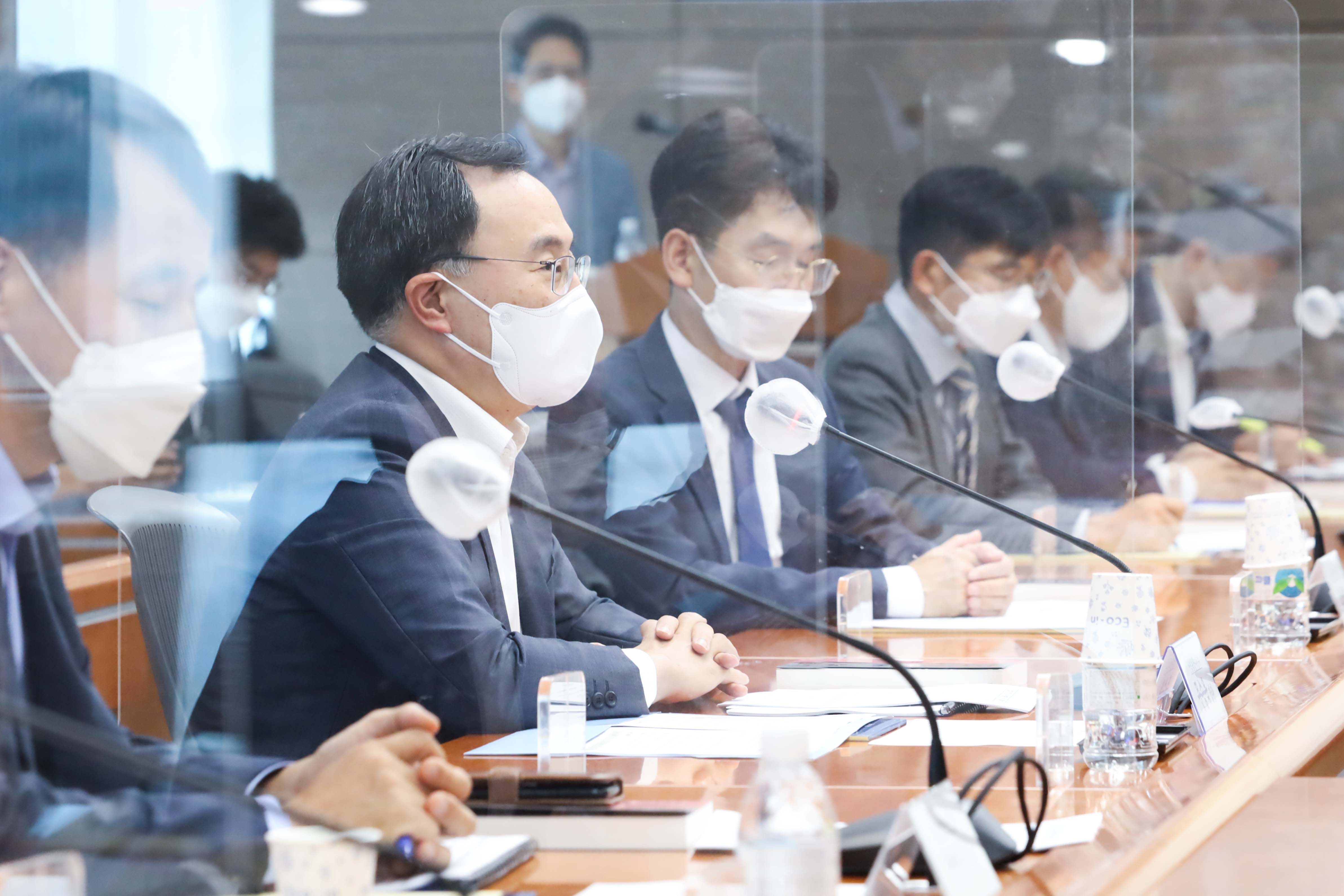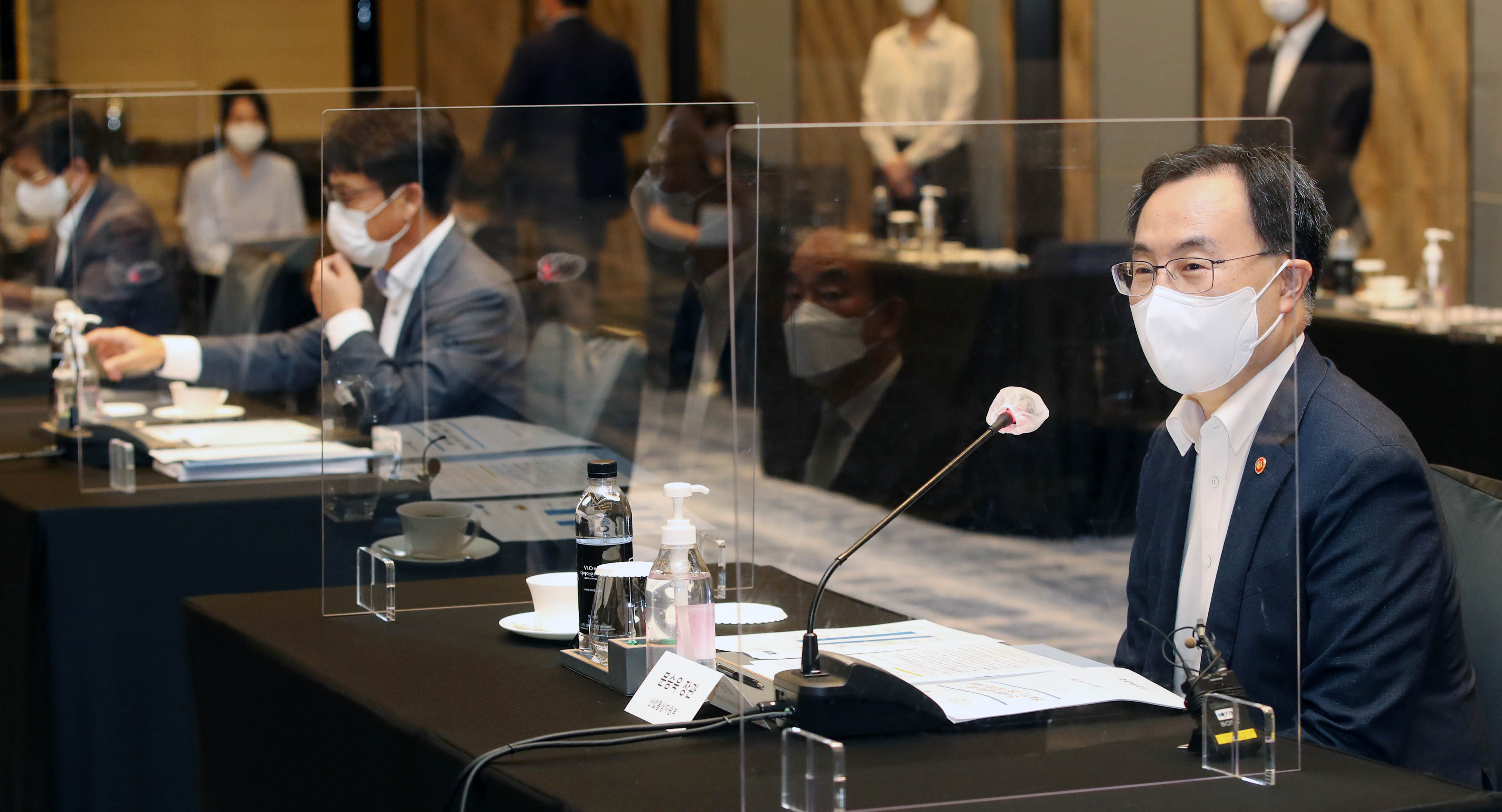 Trade, Industry and Energy Minister Moon Sungwook met with heads of public and private economic research institutes on September 16, to discuss recent economic conditions and the future direction of Korea’s industrial policy. Minister Moon said that the government will push for innovation in the industrial structure by securing industrial and technological competitiveness amid supply chain reorganization, utilizing digital transformation and carbon neutrality effectively, and real date2021-09-16