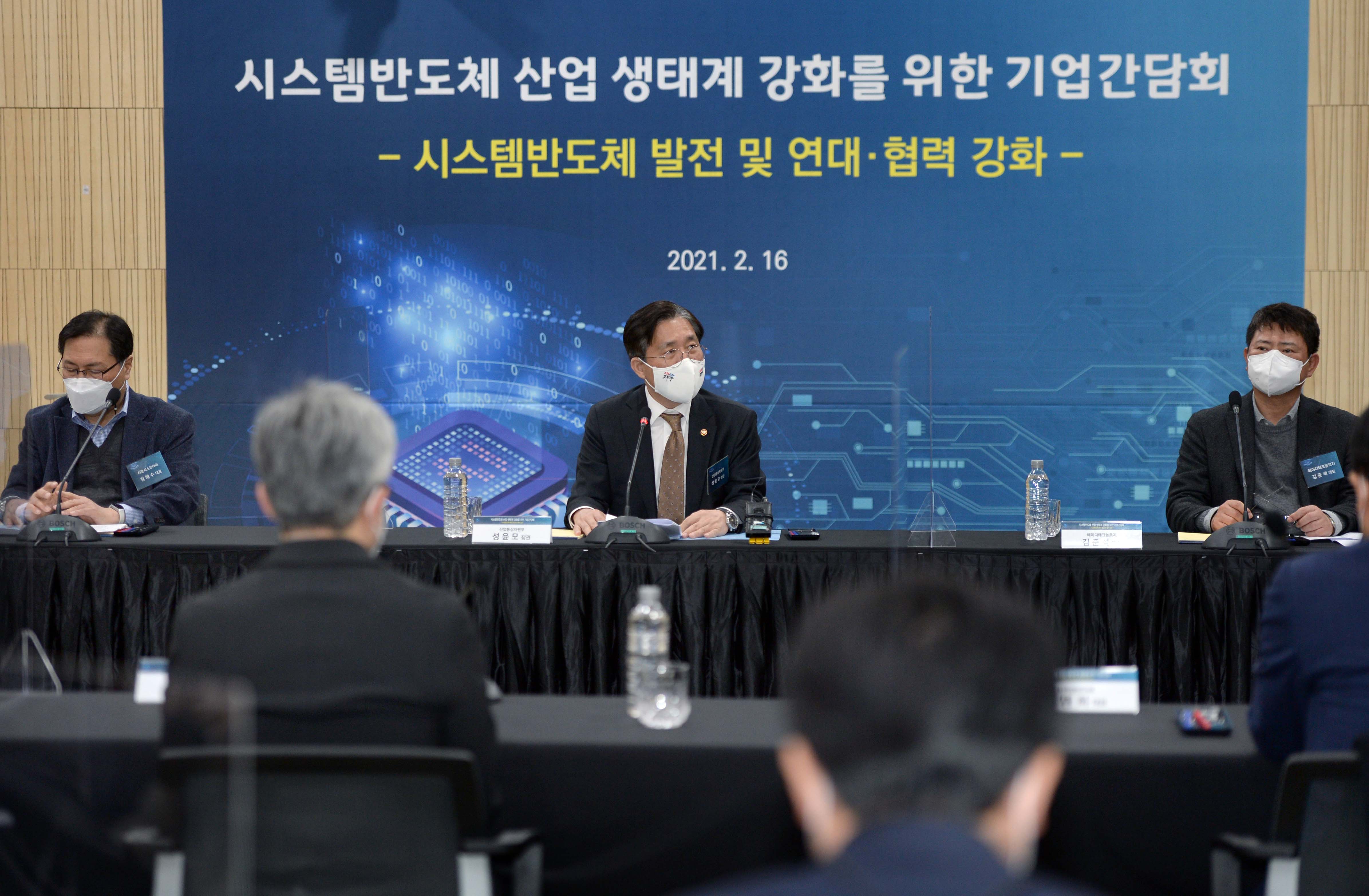 Trade, Industry and Energy Minister Sung Yunmo attended the launching ceremony for the Semiconductor IP (Intellectual Property) Utilization Support Program and met with system semiconductor industry representatives to discuss future policy directions on February 16. Under the Support Program, Korea’s fabless companies will have access to semiconductor IP at discounted prices and online consulting on how to best utilize semiconductor IP, which will help domestic SMEs and startups t date2021-02-16