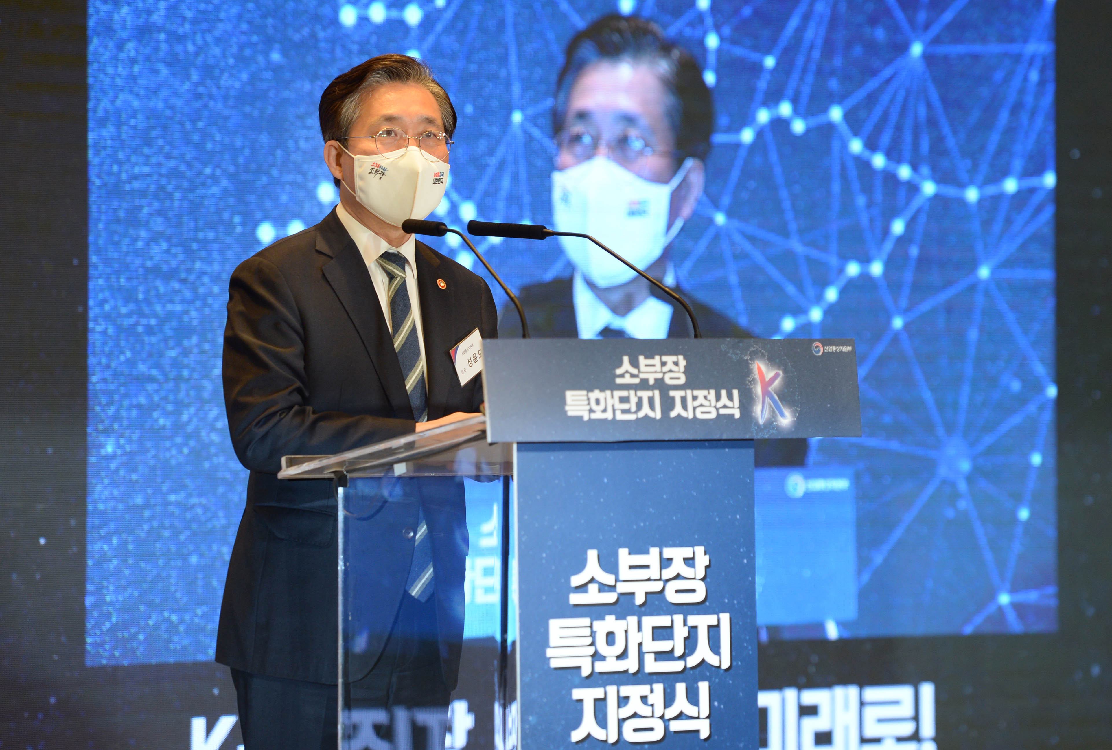 Trade, Industry and Energy Minister Sung Yunmo attended the designation ceremony for five specialized complexes for materials, parts and equipment on February 23, in the government’s efforts to strengthen domestic industries’ competitiveness amid challenges to global supply chains. The five industrial complexes specialized in semiconductors, secondary batteries, displays, carbon materials, and precision machinery will be provided with customized support by the government in areas inc date2021-02-23