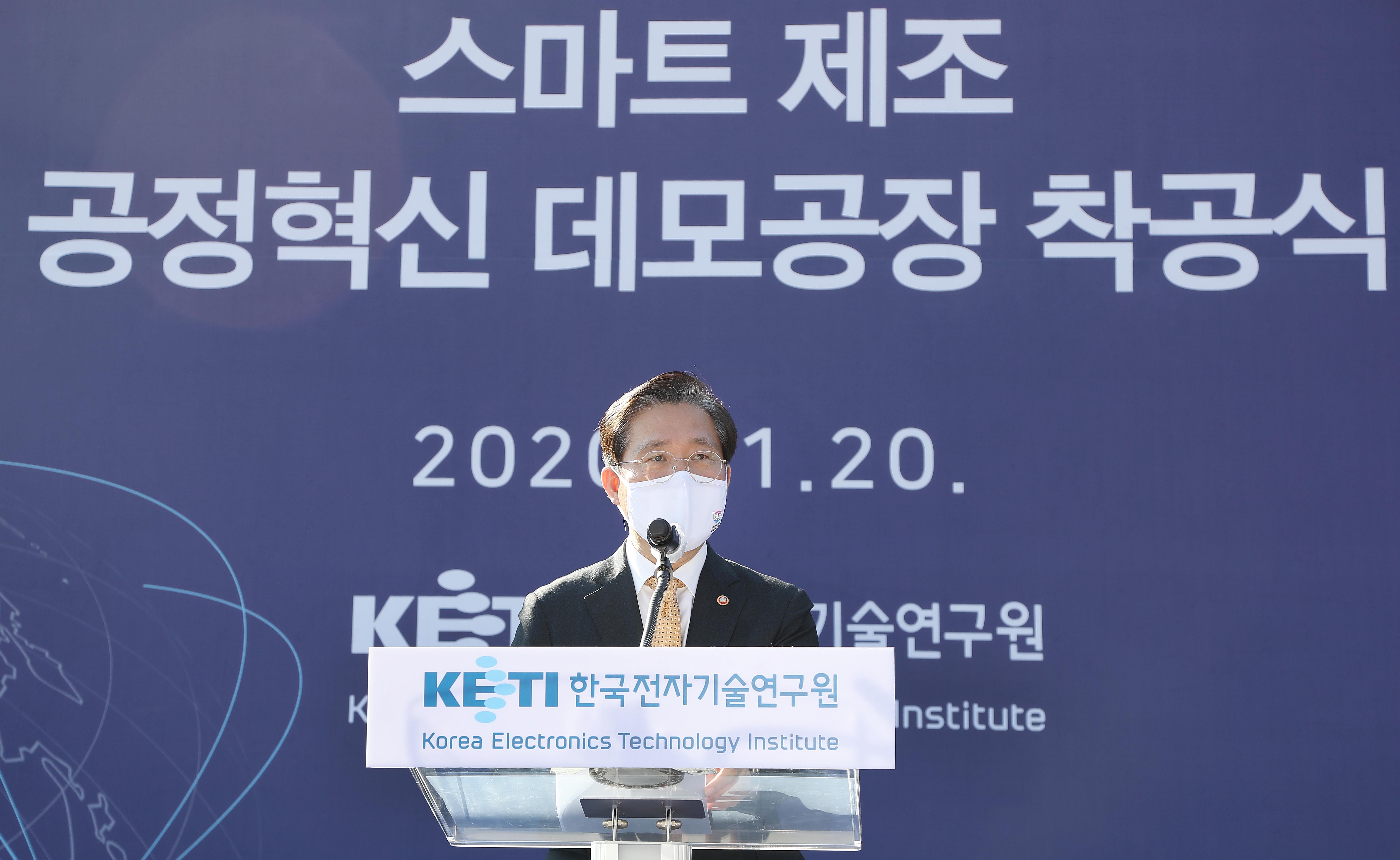 Trade, Industry and Energy Minister Sung Yun-mo made an on-site visit to the site of smart green industrial projects in Changwon on November 20, to celebrate the construction of a smart manufacturing demo factory. The smart manufacturing demo factory is a testbed incorporating advanced Information and Communications Technology (ICT) such as artificial intelligence (AI) and digital twins that could improve business productivity and contribute to the innovation of major industries.   date2020-11-20
