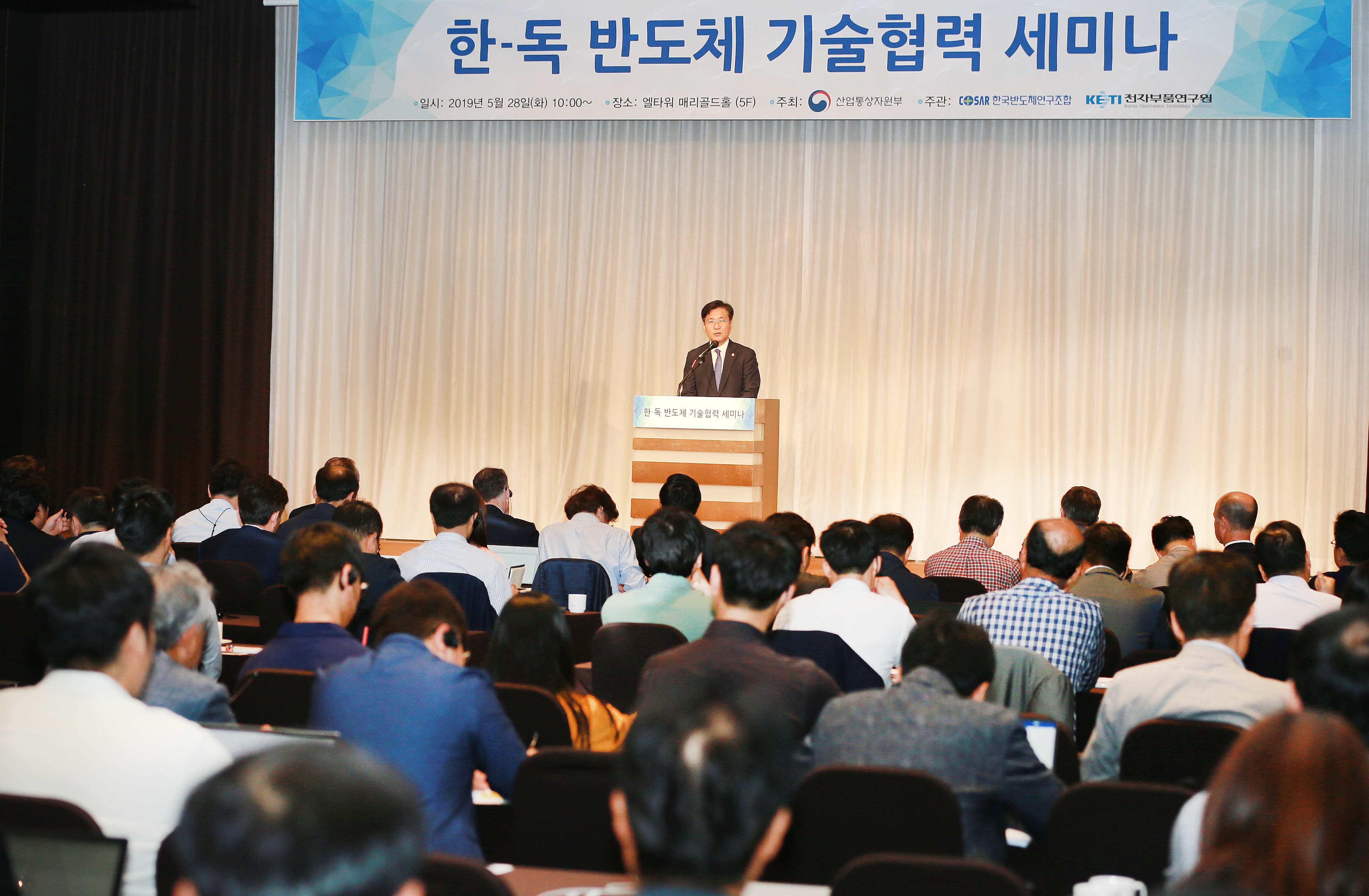 Trade, Industry and Energy Minister Sung Yun-mo delivered a speech at the Korea-Germany seminar on semiconductor technology held in Seoul on May 28.At the seminar, executives from Germany’s Infineon Technologies gave presentations on semiconductor technologies used in various areas such as security, autonomous vehicles, and energy efficiency.The event was attended by some 200 representatives from industry, academia, and research institutes, including German Ambassador to Korea Stephan Auer date2019-05-28