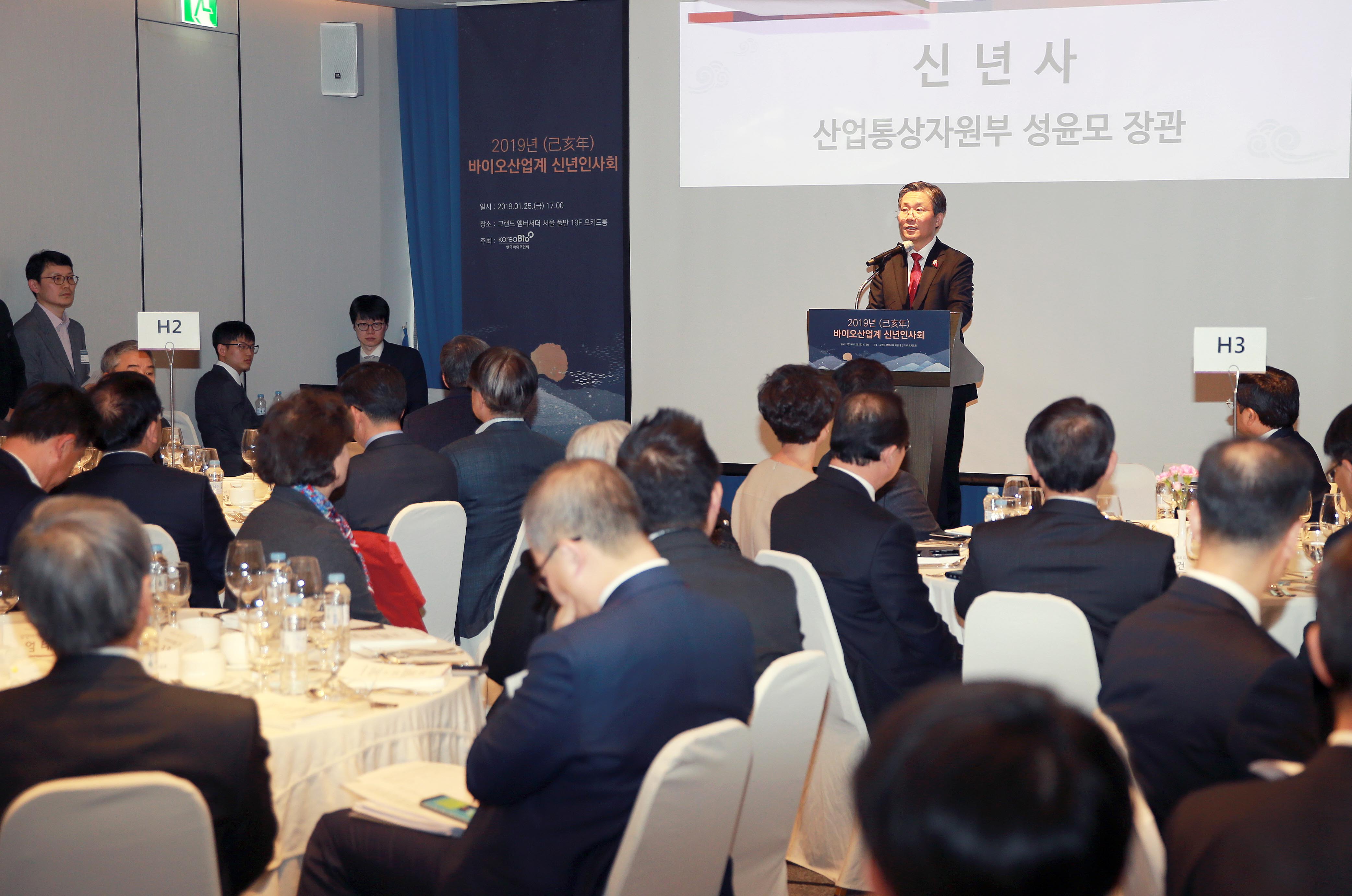Trade, Industry and Energy Minister Sung Yun-mo shared the Korean government’s industrial policy plans with the country’s biotech leaders at a New Year’s meeting in Seoul on January 25.Expressing his gratitude for the development in the biotech sector, Minister Sung laid out four policy directions that would accelerate innovation and promote growth in the industry: improving regulations, creating an innovation ecosystem, building a core infrastructure, and developing new export date2019-01-25