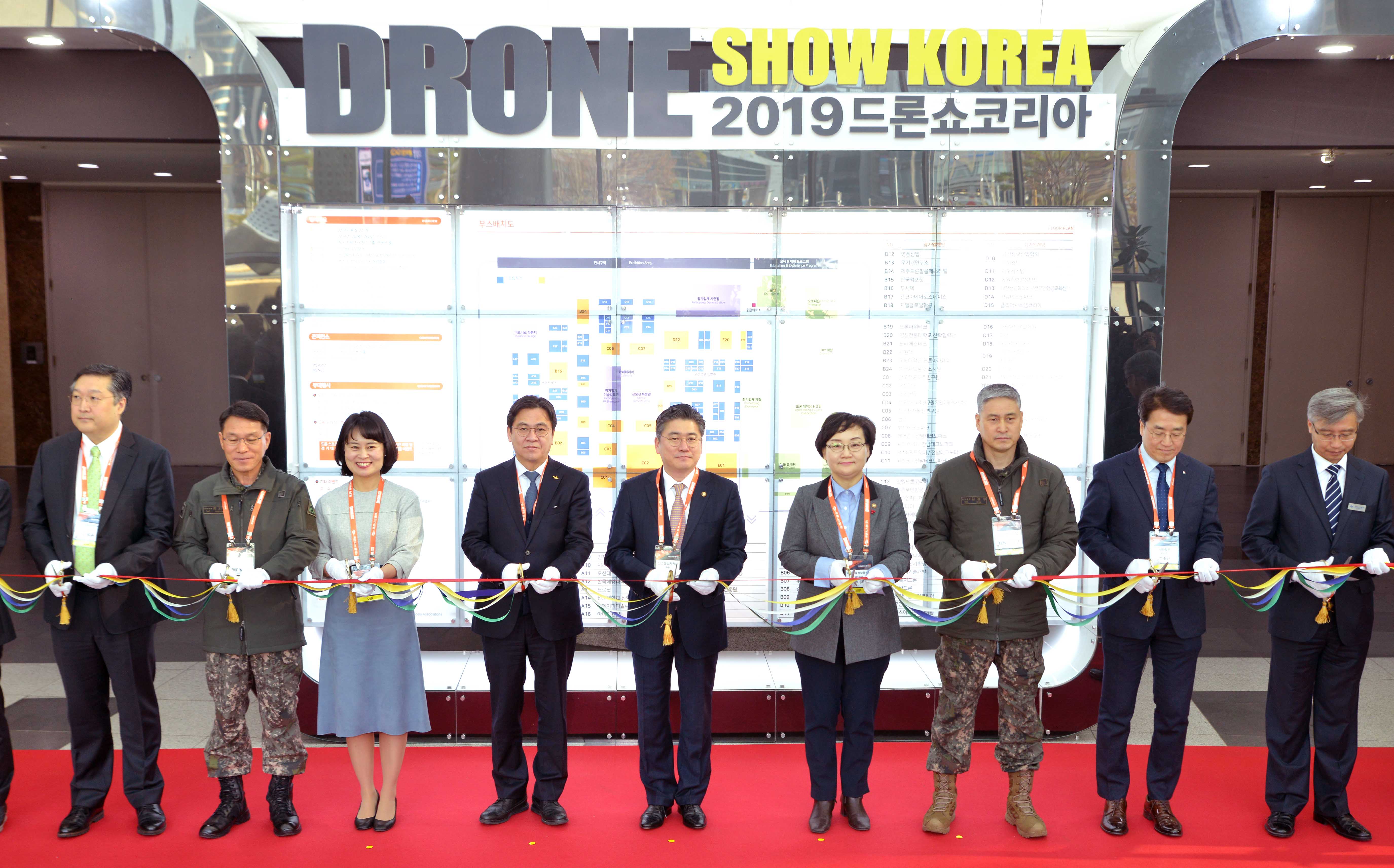 Trade, Industry and Energy Vice Minister Cheong Seung-il (center) and Science Vice Minister Mun Mi-ock (fourth from the right) gave welcoming remarks at the opening ceremony of 2019 Drone Show Korea held in Busan on January 24.During his speech, Vice Minister Cheong introduced the Korean government’s support plans for the drone sector, adding that the competitiveness of the drone industry would require business skills as well as the technology the market wants. He also visited the exhibiti date2019-01-24