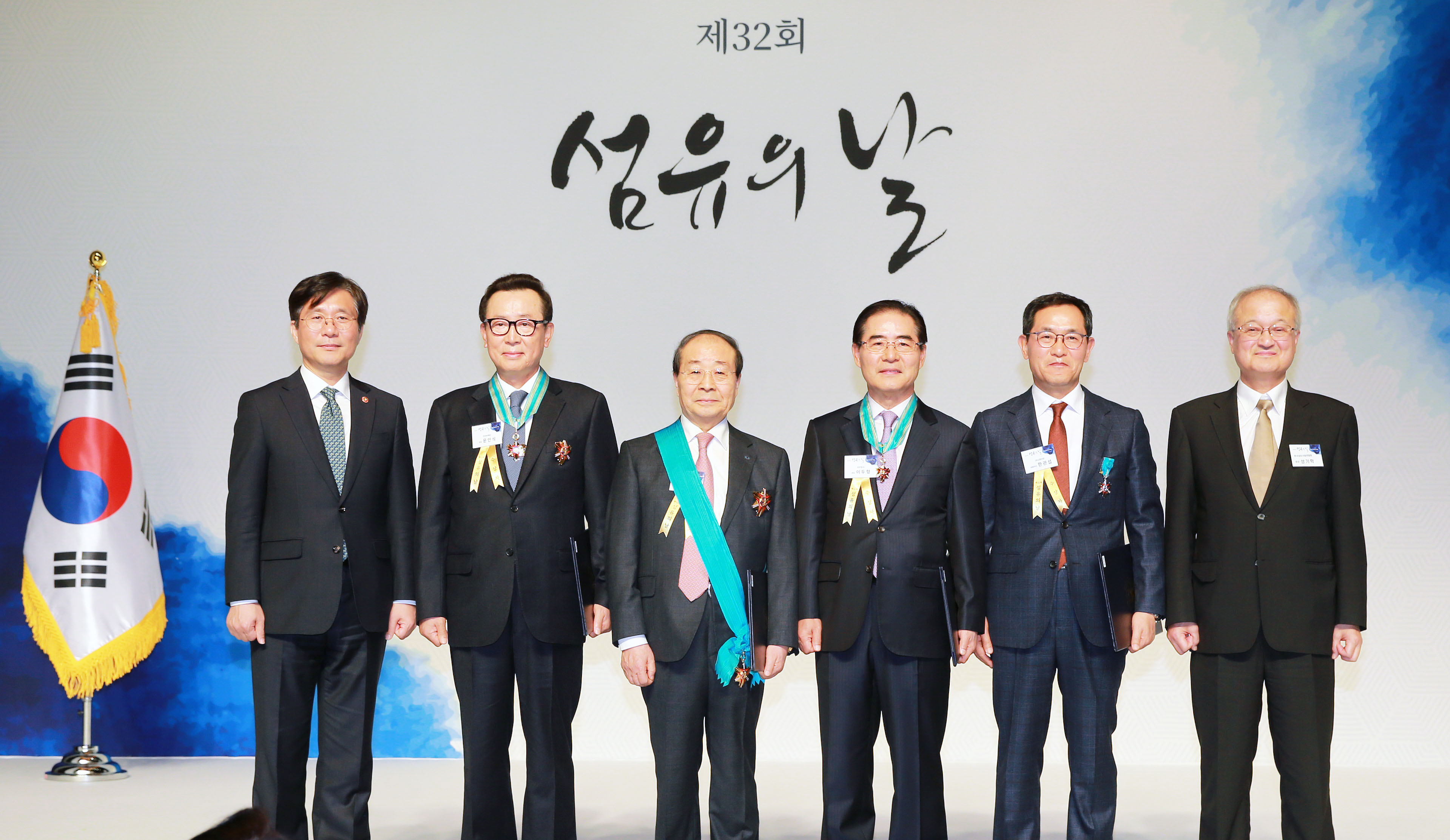 Trade, Industry and Energy Minister Sung Yunmo (left) appreciated the development of the textile industry during his speech at the commemoration ceremony of the 32nd Textile Day in Seoul on November 9.At the event, Minister Sung said that the textile and fashion industries have been one of the main drivers of Korea’s economic growth and still play a key role in the country’s economy. Minister Sung also emphasized cooperation in manufacturing higher value-added products, developing ne date2018-11-09