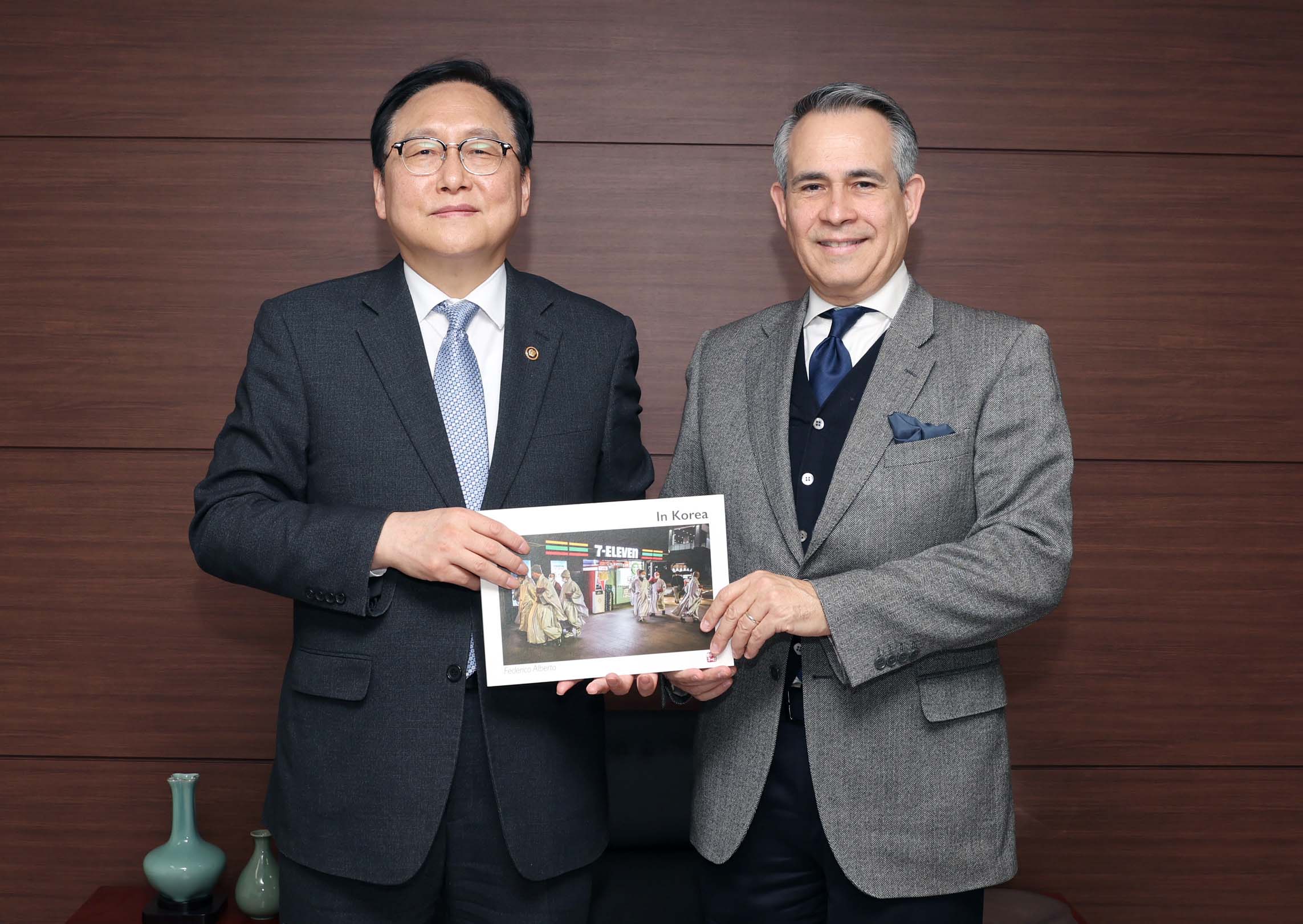 Minister for Trade Inkyo Cheong of the Republic of Korea held talks with Federico Cuello, Ambassador of the Dominican Republic to the Republic of Korea, on March 27 in Seoul to exchange views on the global trade landscape and discuss measures for stronger bilateral economic cooperation. During the talks, Trade Minister Cheong noted the rising need for economic cooperation between Korea and Latin America amid the rapidly changing global trade environment and requested Ambassador Cuello’s active role in this respect as the Dean of the Group of Latin American and Caribbean Countries (GRULAC). In view of the Dominican Republic being Korea’s major economic partner in the Latin American and Caribbean region, Trade Minister Cheong proposed that the two countries widen their trade and industry cooperation based on the bilateral Trade and Investment Promotion Framework (TIPF) signed on the occasion of the Dominican Republic Vice President Raquel Peña’s visit to Korea in April 2023. Moreover, the trade minister asked the Dominican Republic’s cooperation with regard to the bilateral Economic Partnership Agreement (EPA) negotiations for the establishment of a stable basis for greater trade and investment between the two countries. He also requested support towards facilitating Korean businesses’ participation in the Dominican Republic’s energy infrastructure projects going forward. date2025-03-28