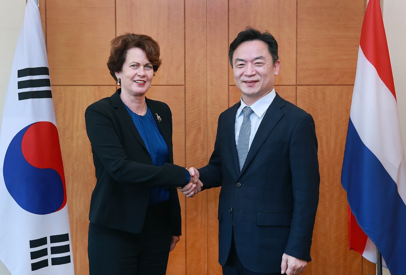 Trade, Industry and Energy Ministry’s Deputy Trade Minister Jeong Dae-jin met with the Netherlands Vice Minister for Foreign Economic Relations Hanneke Schuiling on October 18 at the Lotte Hotel Seoul to discuss semiconductors, nuclear energy, hydrogen and advancement of bilateral economic ties. date2022-10-24