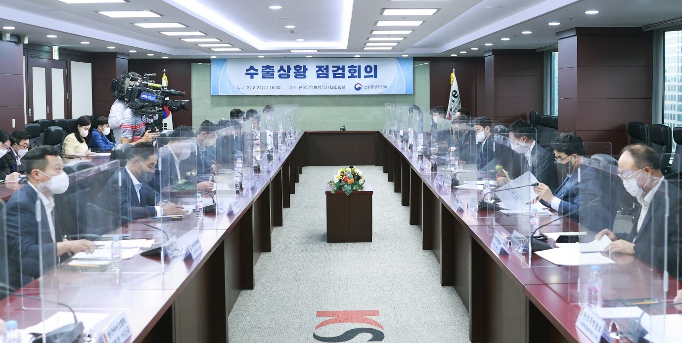 Trade Minister Ahn Duk-geun held a meeting on August 24 at the Korea Trade Insurance Corporation (K-SURE) headquarters to assess South Korea’s exports situation per sector amid rising exchange rate and exports slowdown to seek public-private joint measures to revitalize second-half exports and improve the trade balance. The trade chief gave opening remarks, addressing the global economic landscape and its impact, and discussed measures for supporting exporting businesses. date2022-08-25