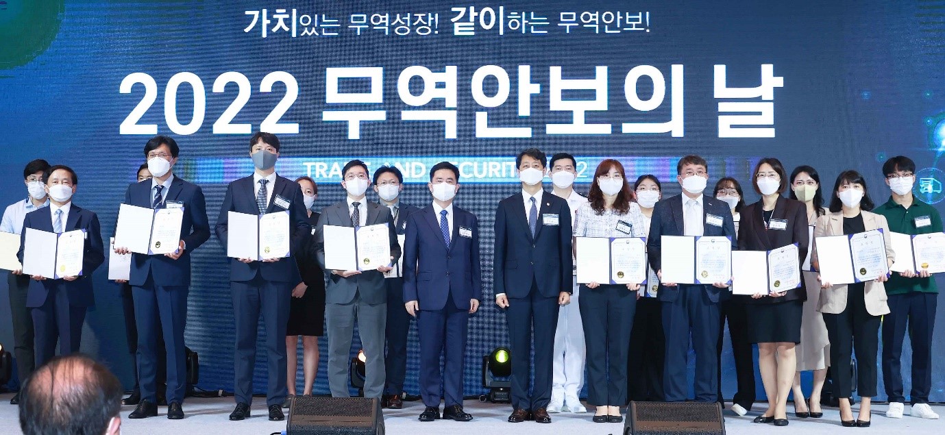 Trade Minister Ahn Duk-Geun attended the Trade and Security 2022 held at COEX in Seoul on July 6 to raise awareness on trade security and encourage companies that contributed to Korea’s exports control system. Following his opening message, the Trade Minister gave a keynote speech under the theme of “Trade Security Environment and Challenges” and awarded 19 government commendations to companies and institutions that showed model implementation of exports control, as we date2022-07-07