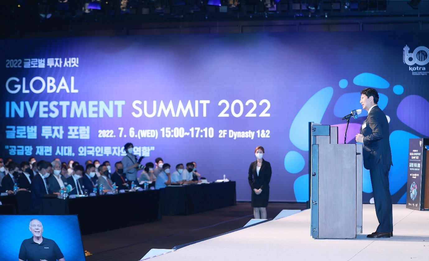 The Ministry of Trade, Industry and Energy (MOTIE) co-hosted the first large-scale Global Investment Summit (hereinafter “the Summit”) with Korea Trade-Investment Promotion Agency (KOTRA) under the new administration at the Shilla Seoul on July 6, and under the theme of “Role of Foreign Investors in the Era of Supply Chain Reconfiguration.” The Summit consisted of an MOU signing ceremony, roundtable, global investment forum and investment consultation, and the entire ev date2022-07-08