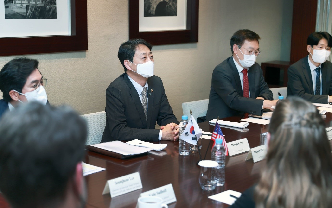 Trade Minister Ahn Duk-geun had talks with Maria Castillo-Fernandez, Ambassador of the European Union to the Republic of Korea, on May 27 at the Government Complex Seoul to discuss future industries and supply chain cooperation between Korea and the EU. Minister Ahn stated that “EVs, batteries and semiconductors, and such future industries currently show very robust Korea-EU supply chain cooperation,” and added that “based on these bilateral collaborations, K date2022-06-03