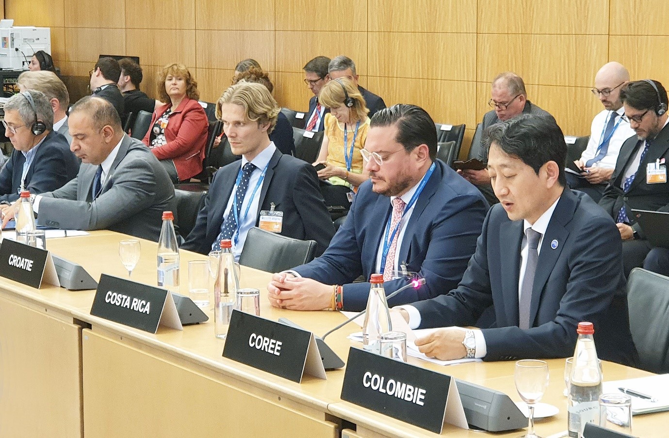 Trade Minister Ahn Duk-geun attended the '2022 Meeting of the OECD Council at the Ministerial Level (MCM)' in Paris on June 10 under the theme of 'The future we want: better policies for the next generation and a sustainable transition.” Minister Ahn discussed measures for preventing unfair competition from trade distortions and carbon leakage, carbon reduction policy adjustments and efficiency improvement. The meeting was attended by 38 countries, consisting of both OECD date2022-06-13