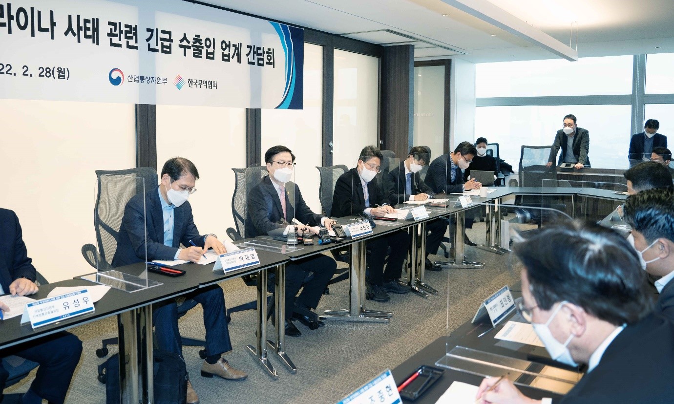 Trade Minister Yeo Han-koo held a 'Russia-Ukraine Situation Emergency Meeting with Exporters and Importers” on February 28 at the World Trade Center Seoul to assess repercussions on trade businesses, logistics, and raw materials supply. Minister Yeo delivered an opening message, followed by exchange of views regarding industry outlook in the case of further escalations, as well as current response measures against logistics risks and materials supply chain challenges. & date2022-03-03