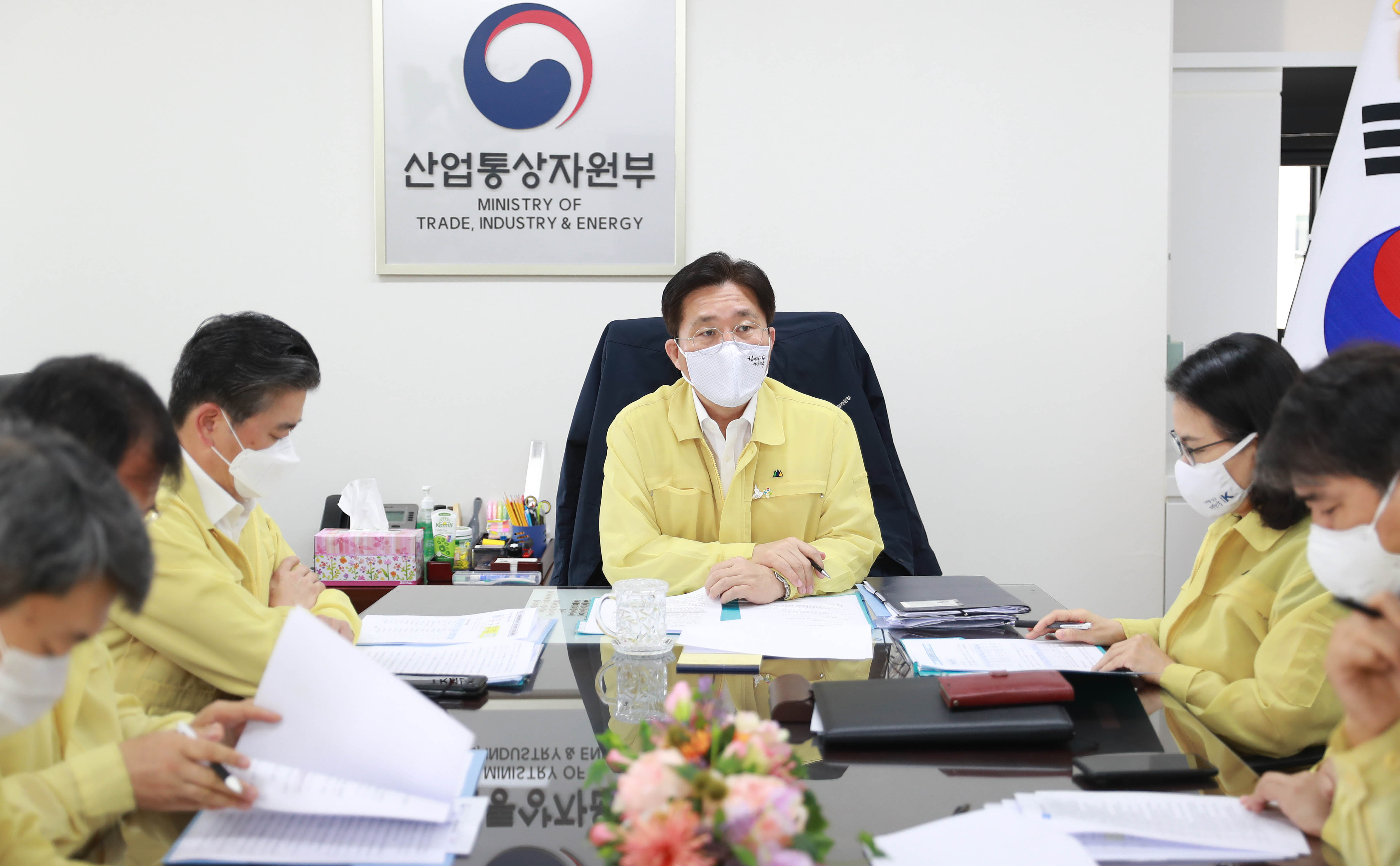 Trade, Industry and Energy Minister Sung Yun-mo (center) called an emergency meeting of high-ranking officials after North Korea’s demolition of the Gaesong Inter-Korean Liaison Office on June 17, to determine its impacts on the real economy. Minister Sung said the Ministry will closely monitor the impact on exports and safety of industrial and energy facilities, and work with relevant industries in order to give necessary support and implement countermeasures. date2020-06-17
