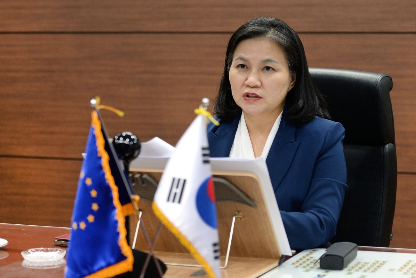 Trade Minister Yoo Myung-hee held a videoconference with her EU counterpart Phil Hogan, on May 7, to discuss cooperative countermeasures to the coronavirus and various trade-related issues. Trade Minister Yoo suggested that the two sides work together to ease non-tariff barriers and hold a digital strategic dialogue to the international standards for digital trade. Yoo also asked for the EU’s support in designating the K-quarantine model an international standard as an effort to s date2020-05-08
