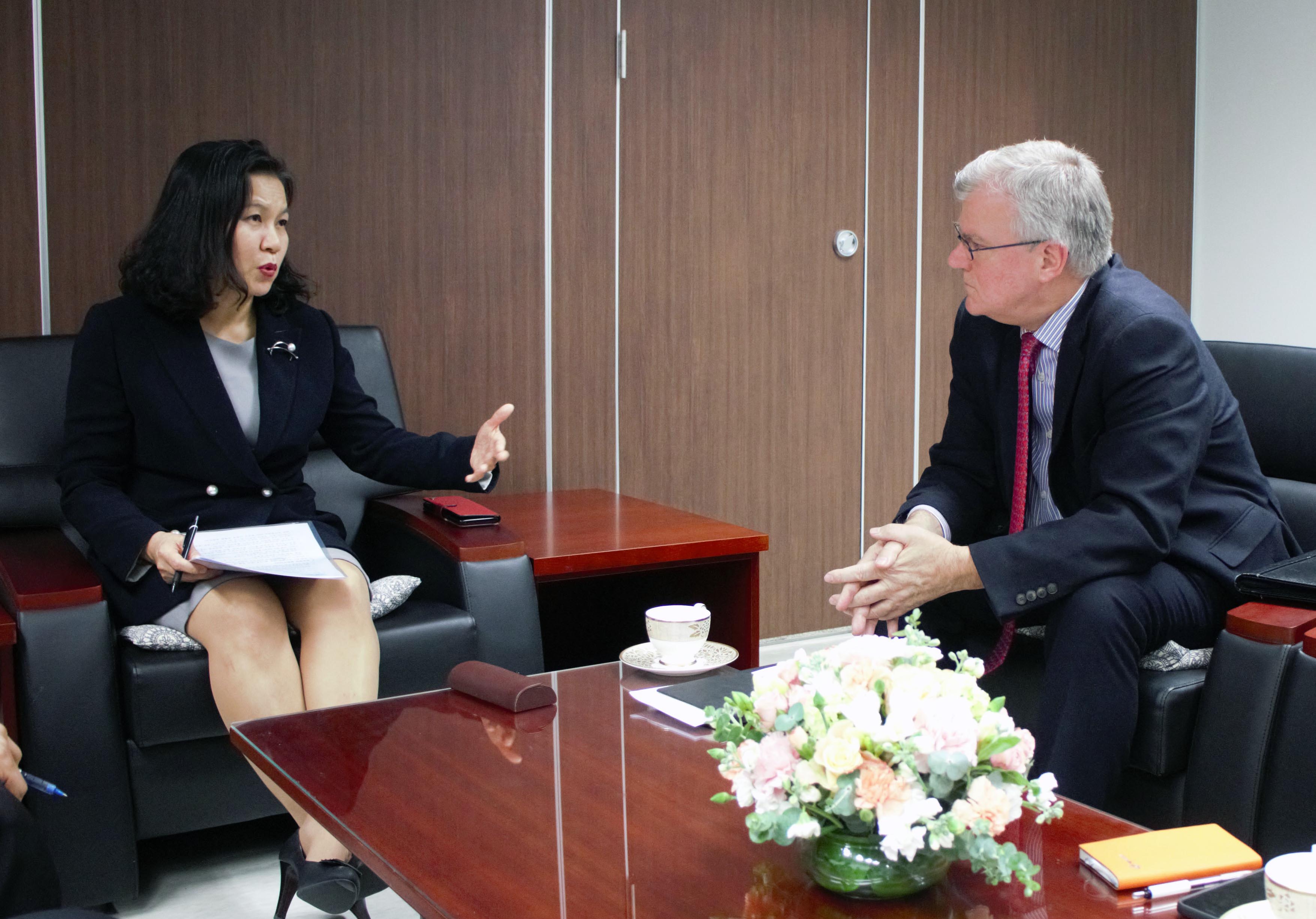 Trade Minister Yoo Myung-hee (left) met with UK Ambassador to Korea Simon Smith at the Korea Chamber of Commerce and Industry (KCCI) in Seoul on April 11.The two officials discussed the current status of Brexit as well as trade issues between the two countries. date2019-04-11