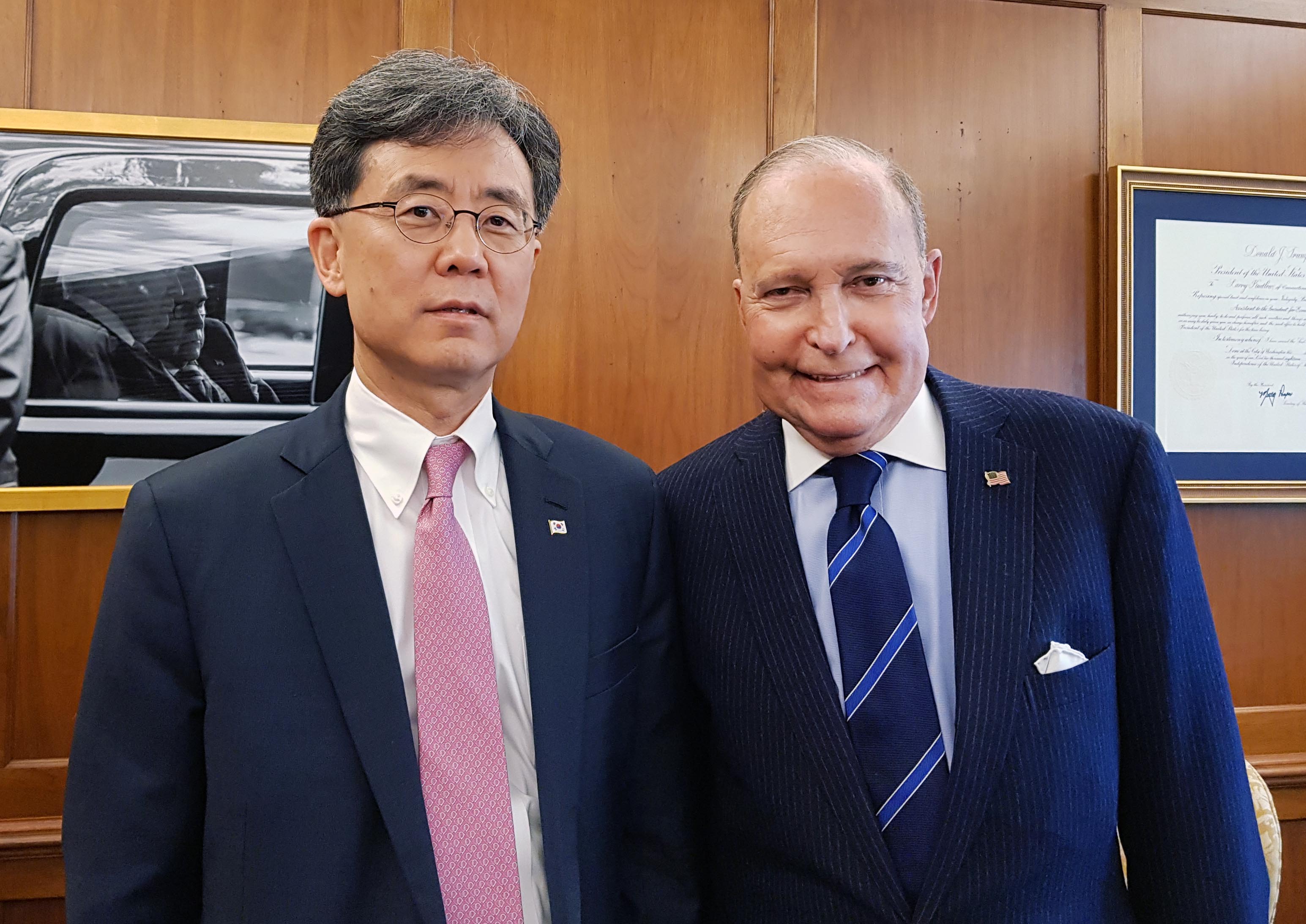 Trade Minister Kim Hyun-chong (left) had talks with key economic team members of the Trump administration including U.S. National Economic Council Director Larry Kudlow (right), U.S. Commerce Department Secretary Wilbur Ross, and U.S. Trade Representative Robert Lighthizer during his visit to Washington, D.C., from January 29 to February 6.During the talks, Trade Minister Kim emphasized that Korea should be spared from potential Section 232 auto and auto parts tariffs, considering the closer, fu date2019-02-06