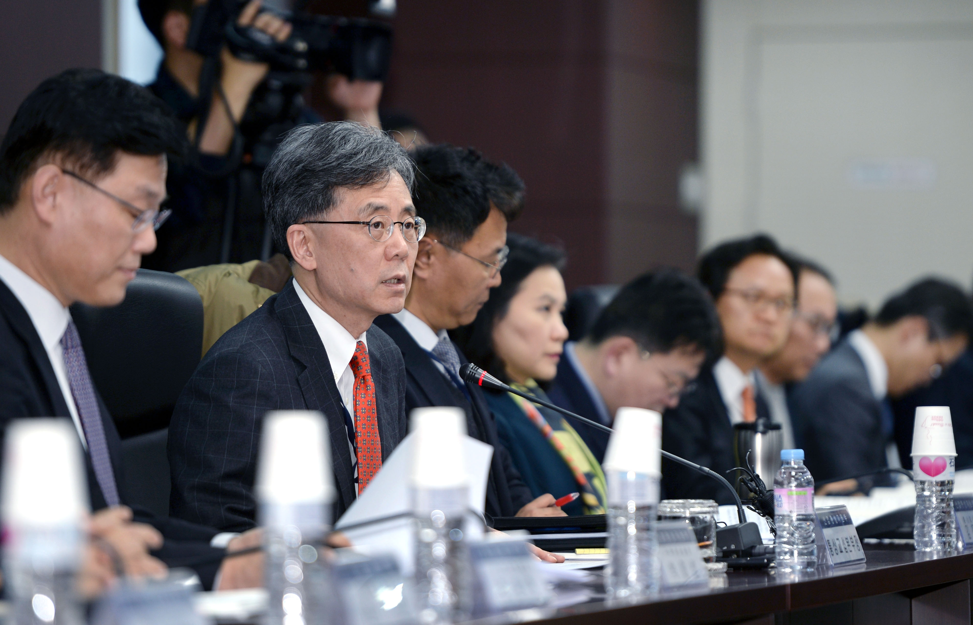 Trade Minister Kim Hyun-chong (center) discussed changing trade conditions and measures necessary to respond to them with Korean commercial attaches at the Sejong Government Complex on February 13.During the discussion, Trade Minister Kim underscored that protectionism and the Fourth Industrial Revolution are shifting the current global value chains to regional ones and that this places greater importance on the coordination between industry and trade policies. Trade Minister Kim stressed that t date2019-02-13