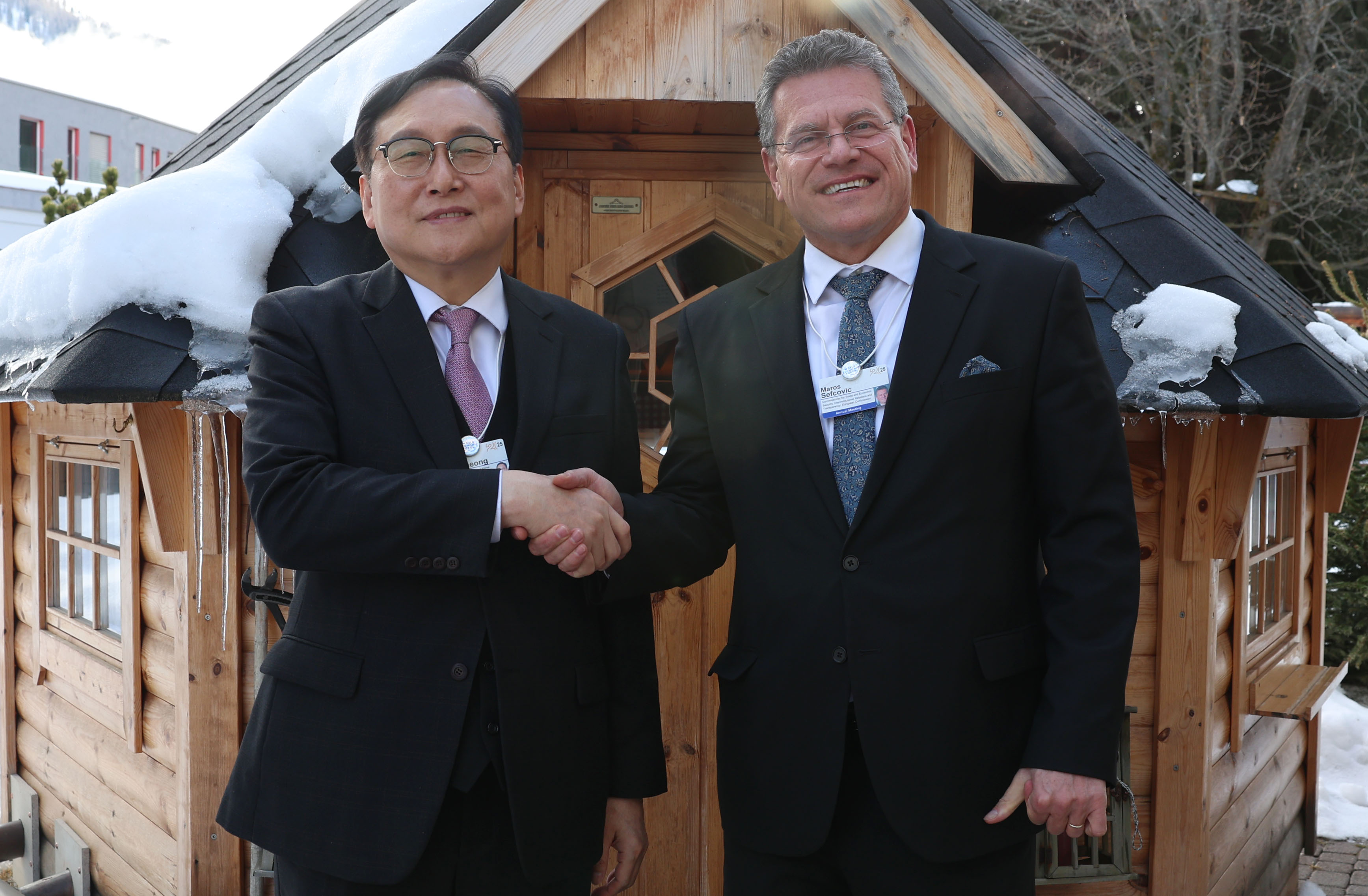 Minister for Trade Inkyo Cheong met European Commission Executive Vice-President Maroš Šefčovič on January 23 in Switzerland on the margins of the 2025 Annual Meeting of the World Economic Forum (WEF) in Davos and discussed global trade and economic security issues. date2025-02-03