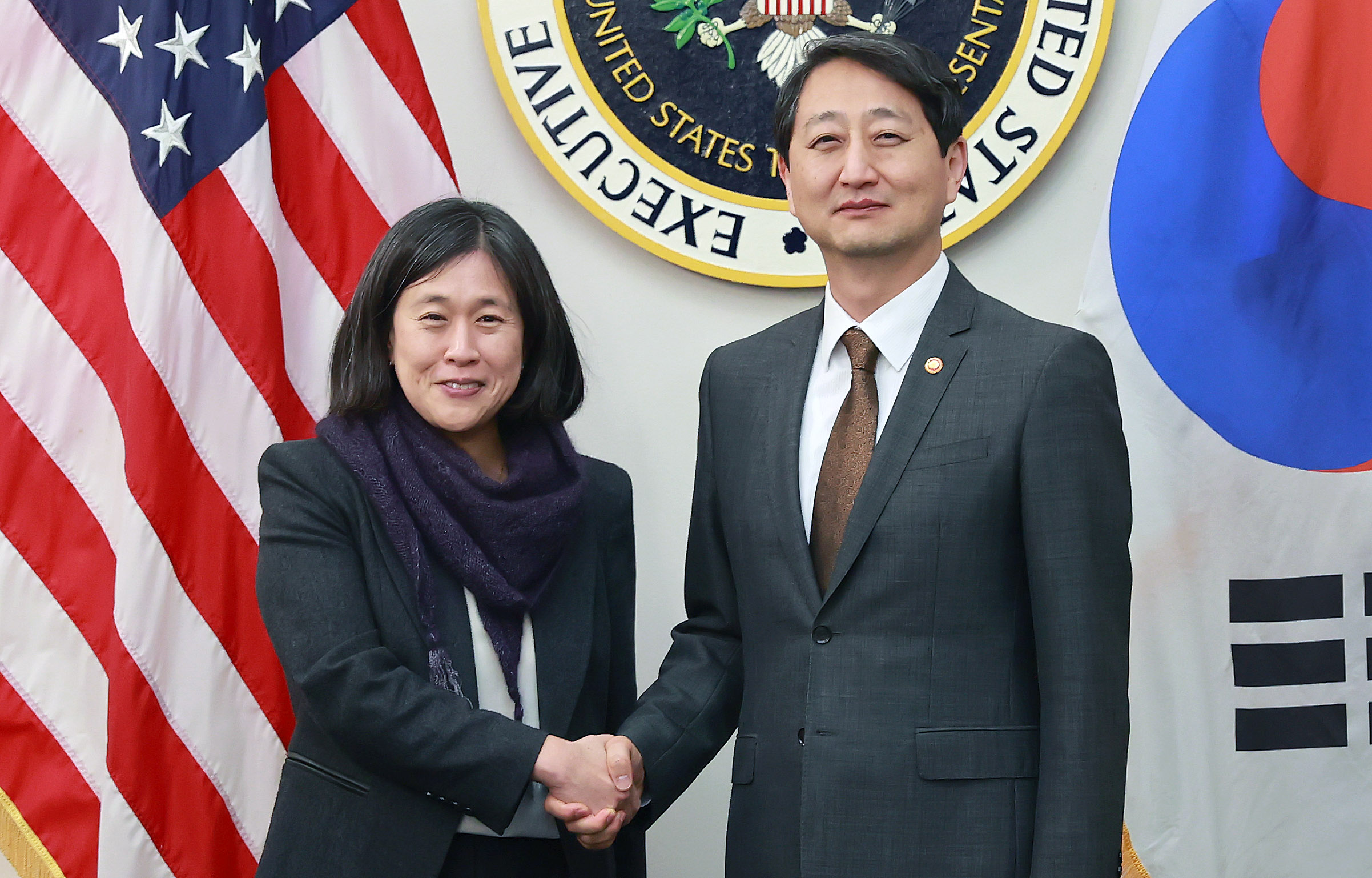 Trade, Industry and Energy Minister Dukgeun Ahn of the Republic of Korea held talks with U.S. Trade Representative Katherine Tai on January 8 (local time) in Washington D.C. and discussed Korea-U.S. trade issues including the bilateral FTA. date2025-01-13
