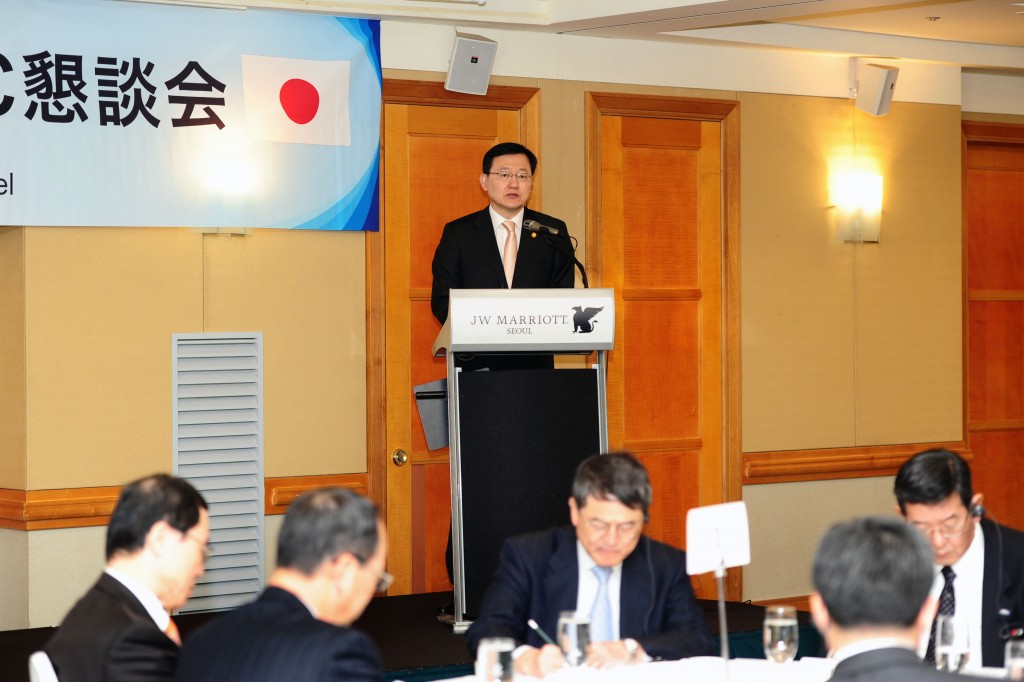 Minister of Knowledge Economy Sukwoo HONG speaks at the annual luncheon meeting of the Seoul Japan Club, an association of Japanese businesspeople based in Korea, on February 23 in Seoul. Addressing 24 business leaders, the Minister expressed his intention of continuing his efforts to improve the foreign investment environment in Korea. date2012-03-06