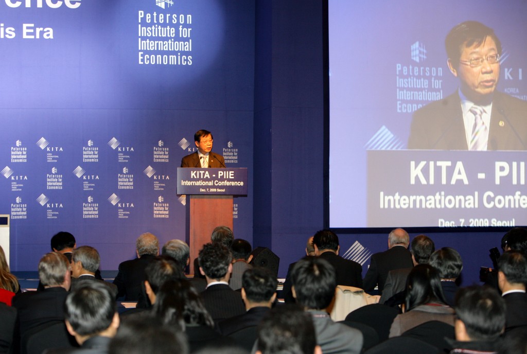 Korea, U.S. Economists Discuss Global Trade Vice Minister for Trade and Energy Kim Young Hak addresses participants in an international conference on December 7 in Seoul. The Korea International Trade Association and the Peterson Institute for International Economics jointly organized the forum, which featured a number of notable economists, to discuss the global economy and trade. date2009-12-08