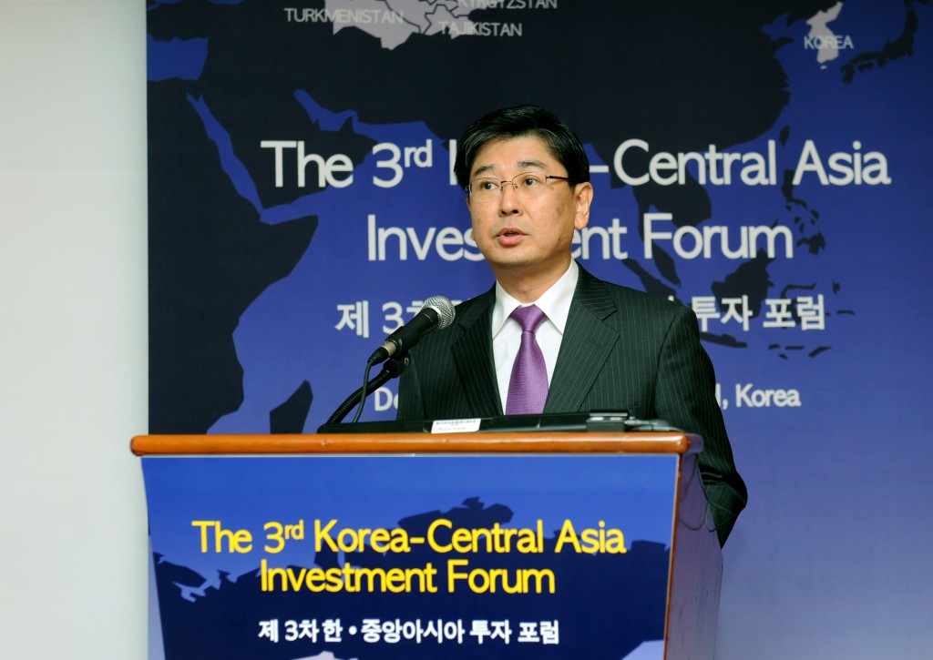 Deputy Director for International Trade and Investment Kim Kyungsik addresses representatives of five Central Asian countries—Kazakhstan, Uzbekistan, Turkmenistan, Tajikistan and Kyrgyzstan—at a joint investment forum held December 2 in Seoul. This was the third event of its kind. date2010-12-03